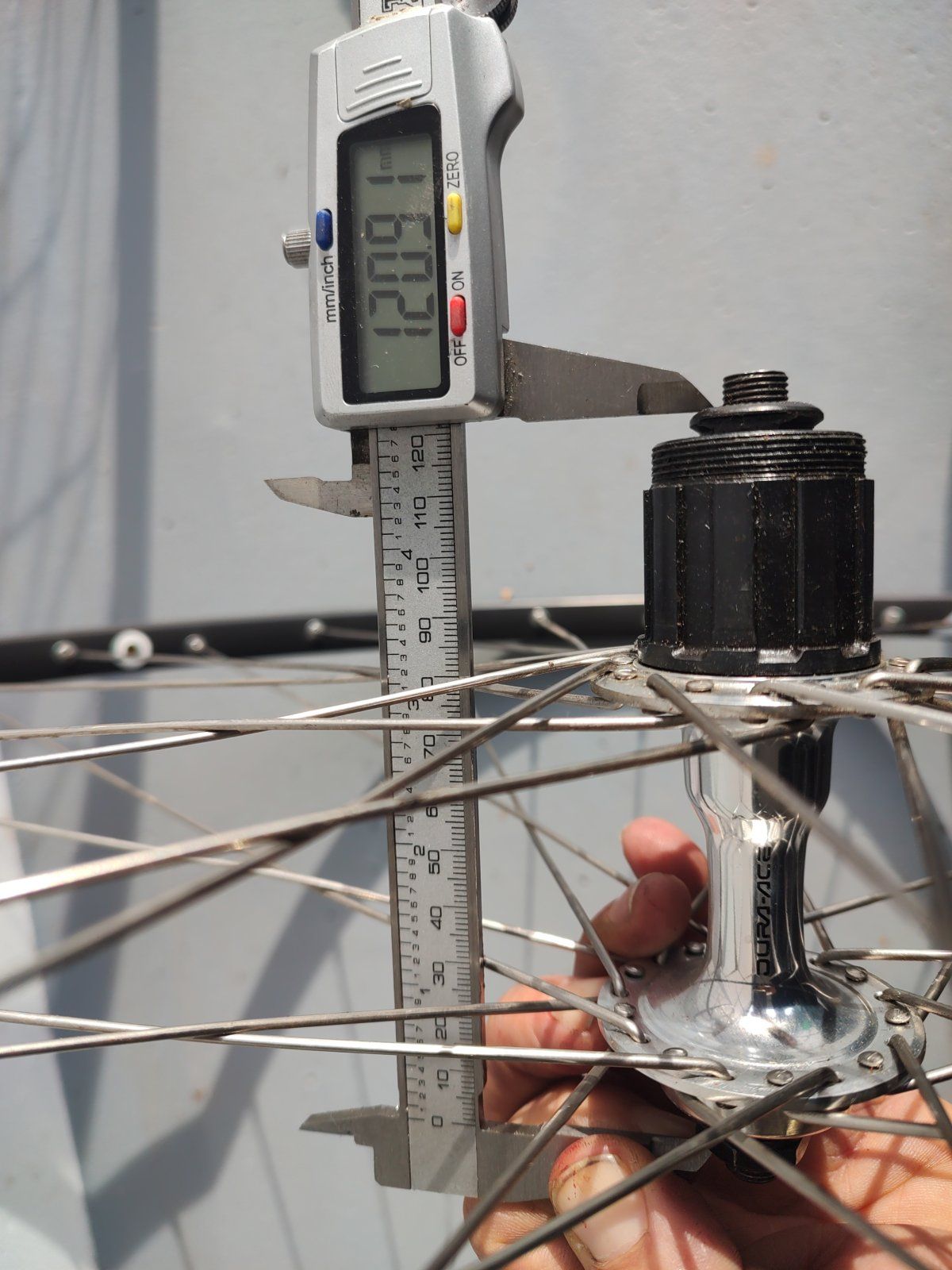 Aber die einbaubreite bemisst sich doch -mAn- bis zum Ende der Achse und nicht wie bei dir im Bild. Da käme man dann wohl eher auf 126mm..Das kann natürlich sein. Der Vorbesitzer war ein echter Einspeichprofi und hat sich das so gebaut wie er brauchte.