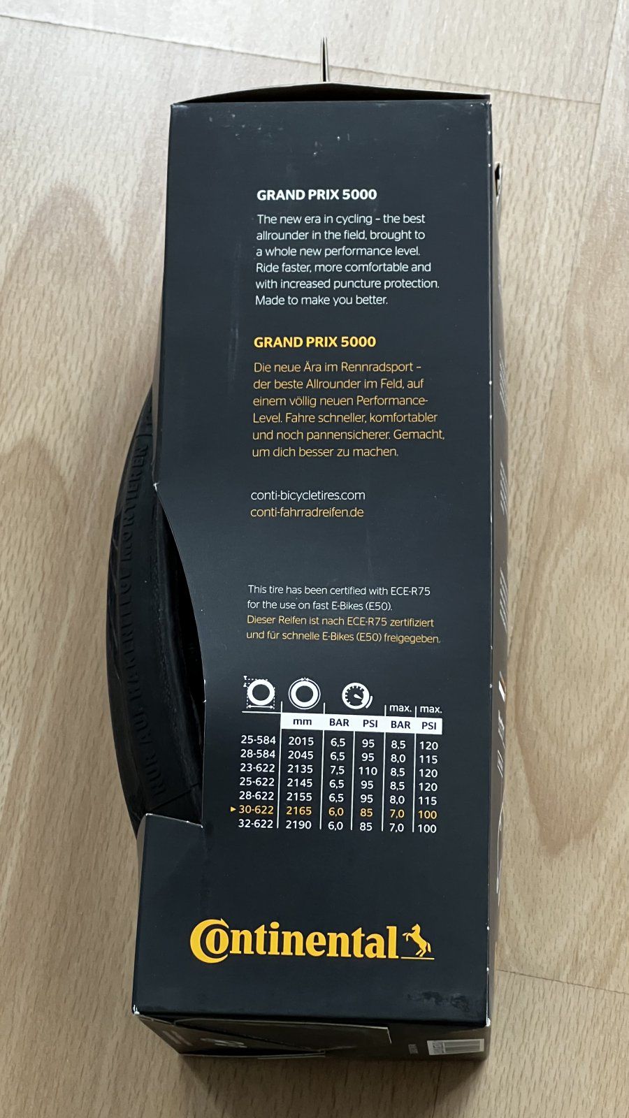 1 Continental 5000 Faltreifen in Grösse 30-622. Ca. 300km gefahren. Wir mussten unterwegs den Mantel ersetzten und der Händler vor Ort hatte nur diesen Reifen an Lager. Und bevor er jetzt bei uns im Keller überwintert hat jemand vielleicht Freude dran. Preis €20.00 inkl. Versand.