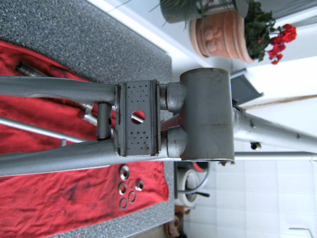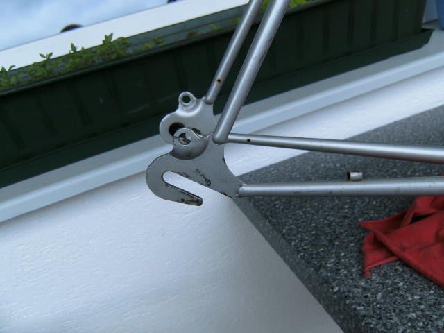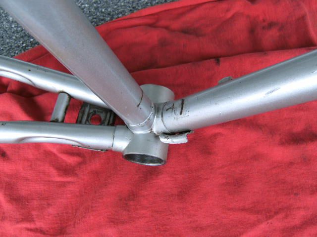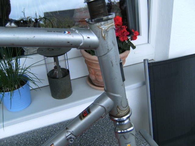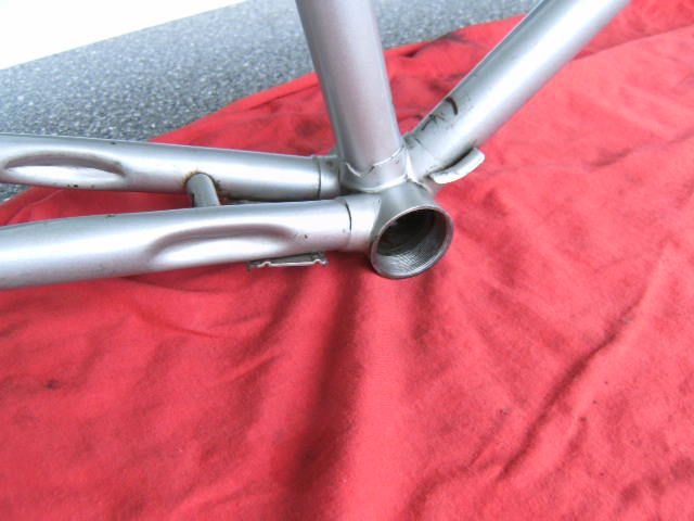 Zustand ist bis auf eine schramme an der hinteren Sattelstrebe und ein wenig Rostansatz auf der Gabelkrone sehr gut.