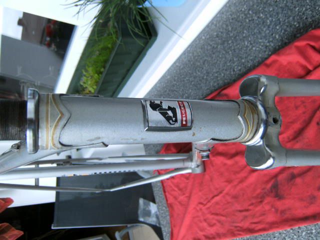 1 Stahlrahmen, gemufft, mit dazugehöriger Gabel, halbverchromt, Peugeot, PX8M, RH ist 60 (Mitte Tretlager bis Oberkante Sattelrohr), Oberrohrlänge beträgt ca 60 cm (MitteSattelrohr bis Mitte Steuerrohr), Steuerrohrlänge beträgt ca. 15,5 cm. Der Rahmen ist von 1980, der originale Steuersatz ist dabei. Ösen zur Schutzblech-Gepäckträgerbefestigung sind an beiden Ausfallenden vorhanden. Der Rahmen hat nach 33 Jahren diverse Gebrauchsspuren, weitere Detailbilder bei Interesse möglich.