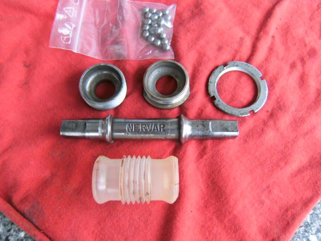 2. Innenlager "Nervar", Wellenlänge 126 mm, BSA, da das Lager mit jeweils 11 einzelnen Kugeln gelaufen ist, ist die Welle noch gut und ohne Pitting: 12 Euro