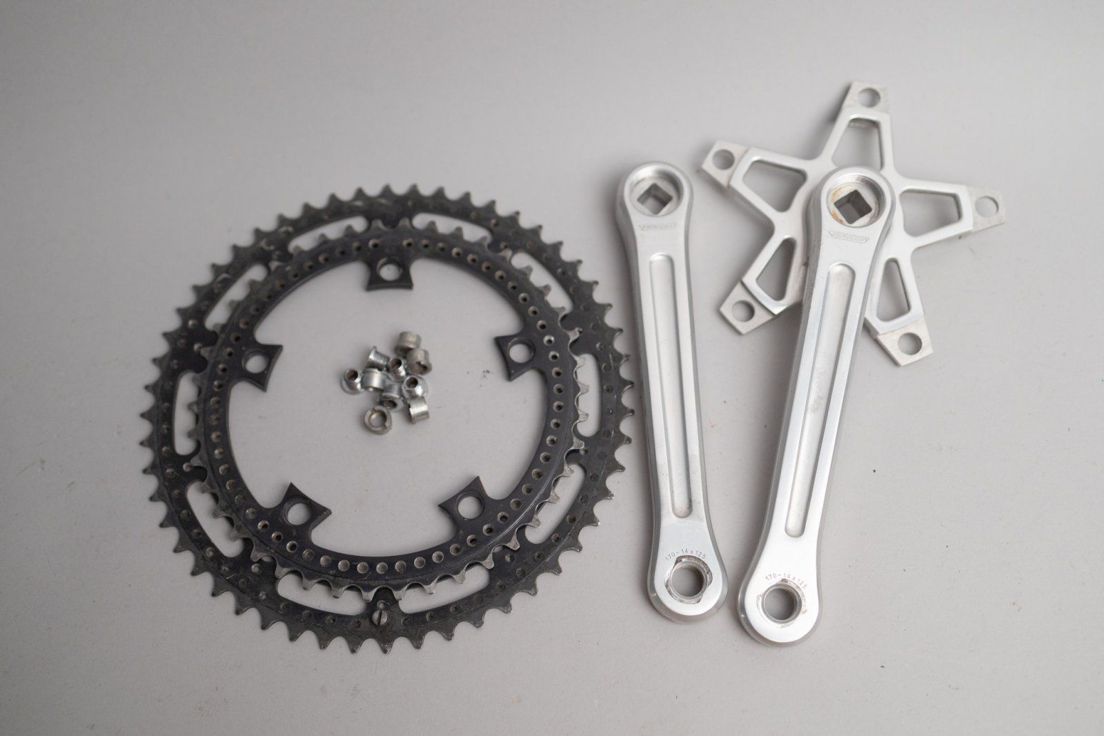 - Kurbelsatz Shimano FC-6400 172,5mm 53/42, eine Kurbelkappe fehlt, das kleine Kettenblatt ist ziemlich tot...vielleicht als Bastelobjekt und zum aufpolieren da die Substanz ziemlich gut ist 17,00€