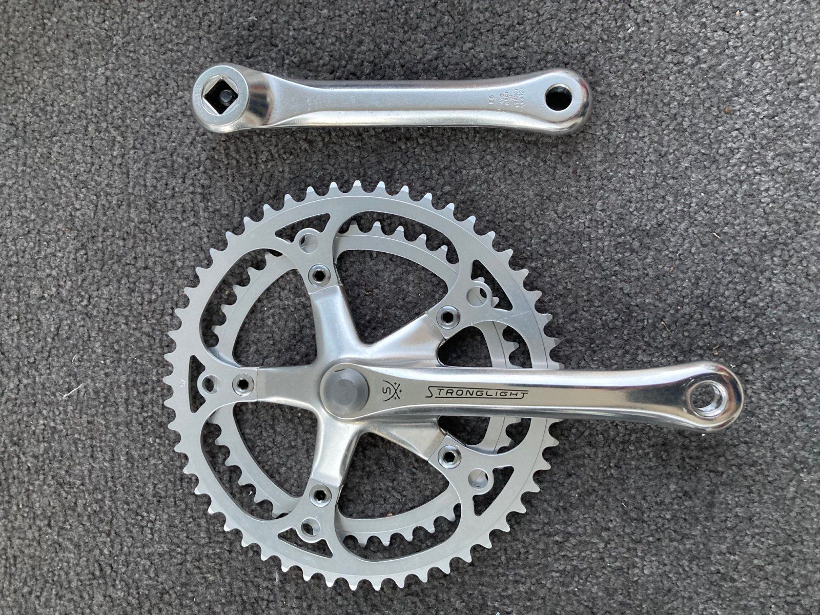Habe hier noch eine Stronglight Kurbelgarnitur in NOS, 42x52, 170mm und 14x125 Pedalgewinde,