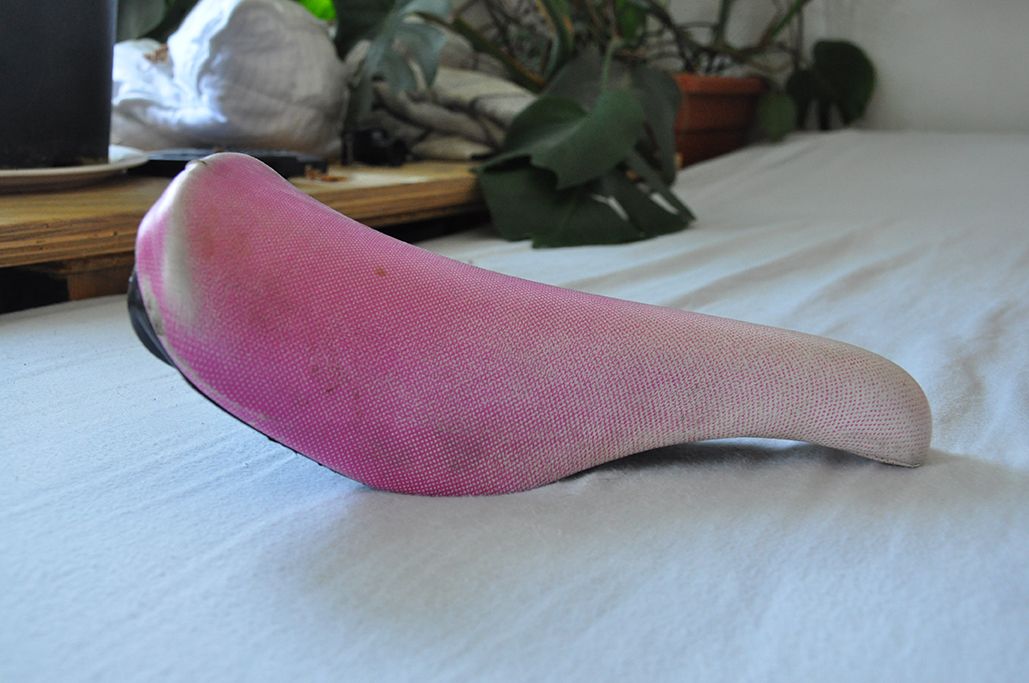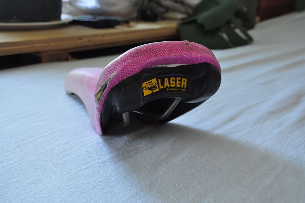 Sattel: Selle San Marco Laser, Verlauf von weiß zu lila, schon ordentlich mitgenommen --> jetzt 7,-