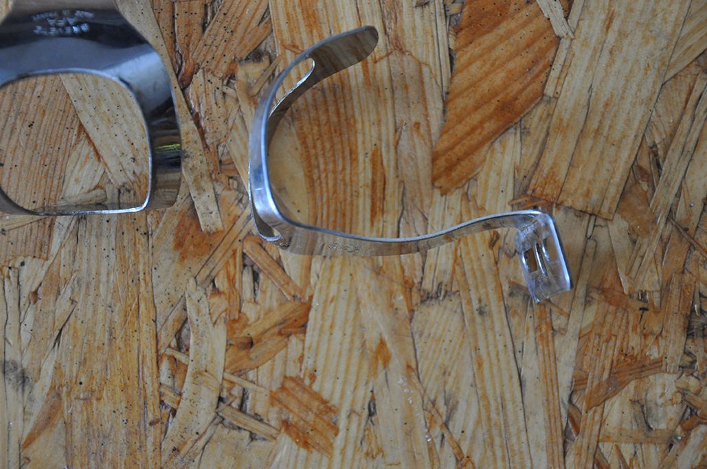 Leder noch gut, Spannschraube bei der Hälfte, Nieten von unten angerostet, kleine Macken an den Klemmstelle --> bleibt bei 65,-