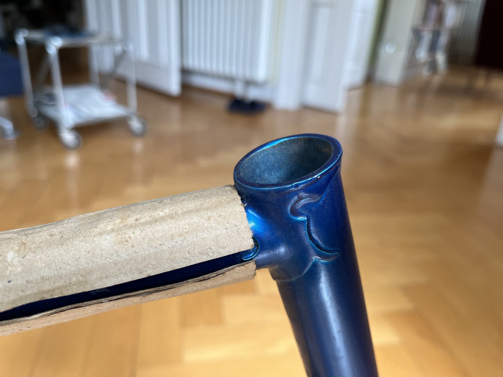 An der linken Gabelscheide ist auf der Rückseite eine vielleicht 5mm im Durchmesser Beule, ich hatte Schwerigkeiten sie überhaupt zu fotografieren.
