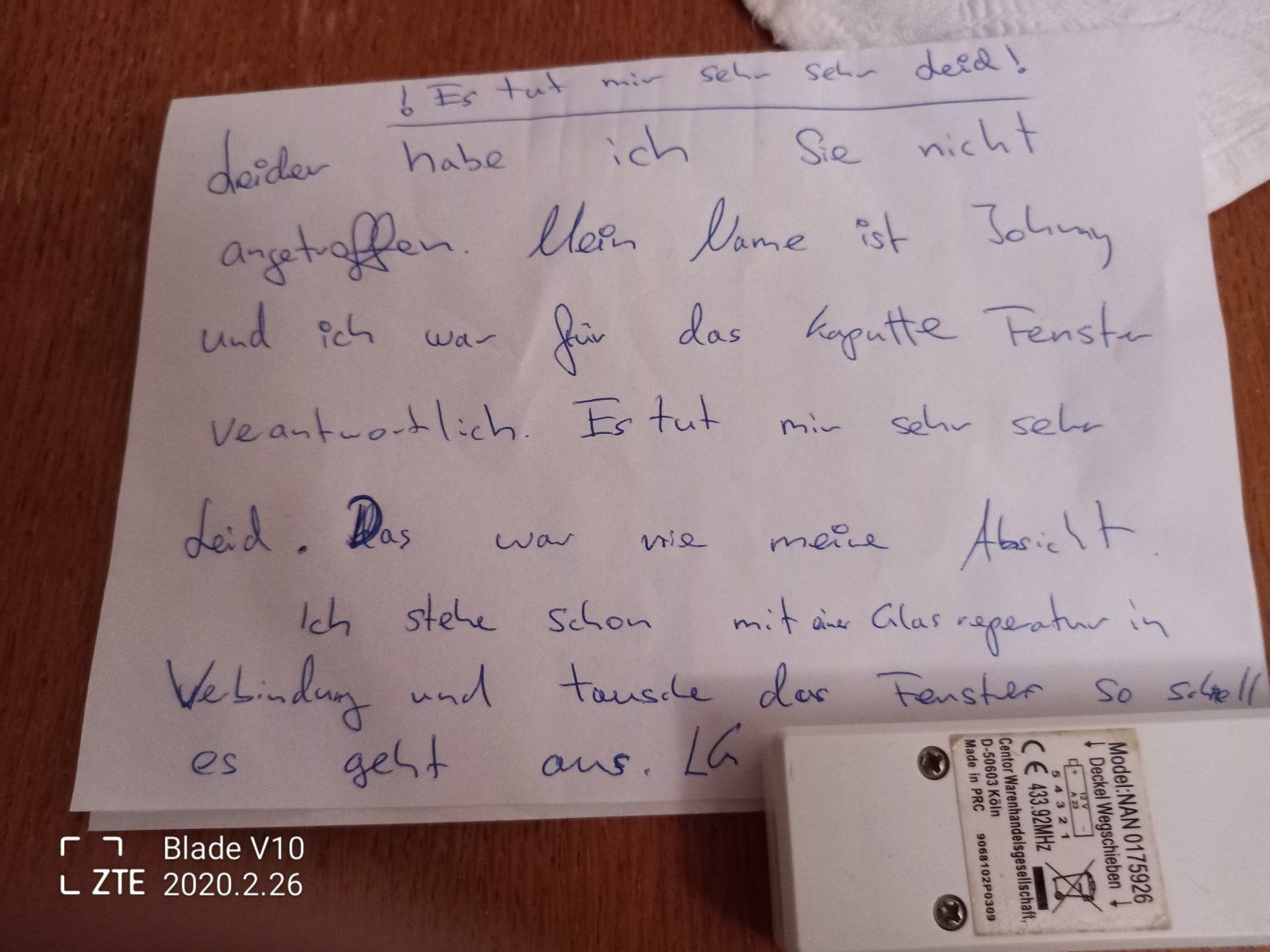 Habe angerufen und er tat mir richtig leid,ehrlich!