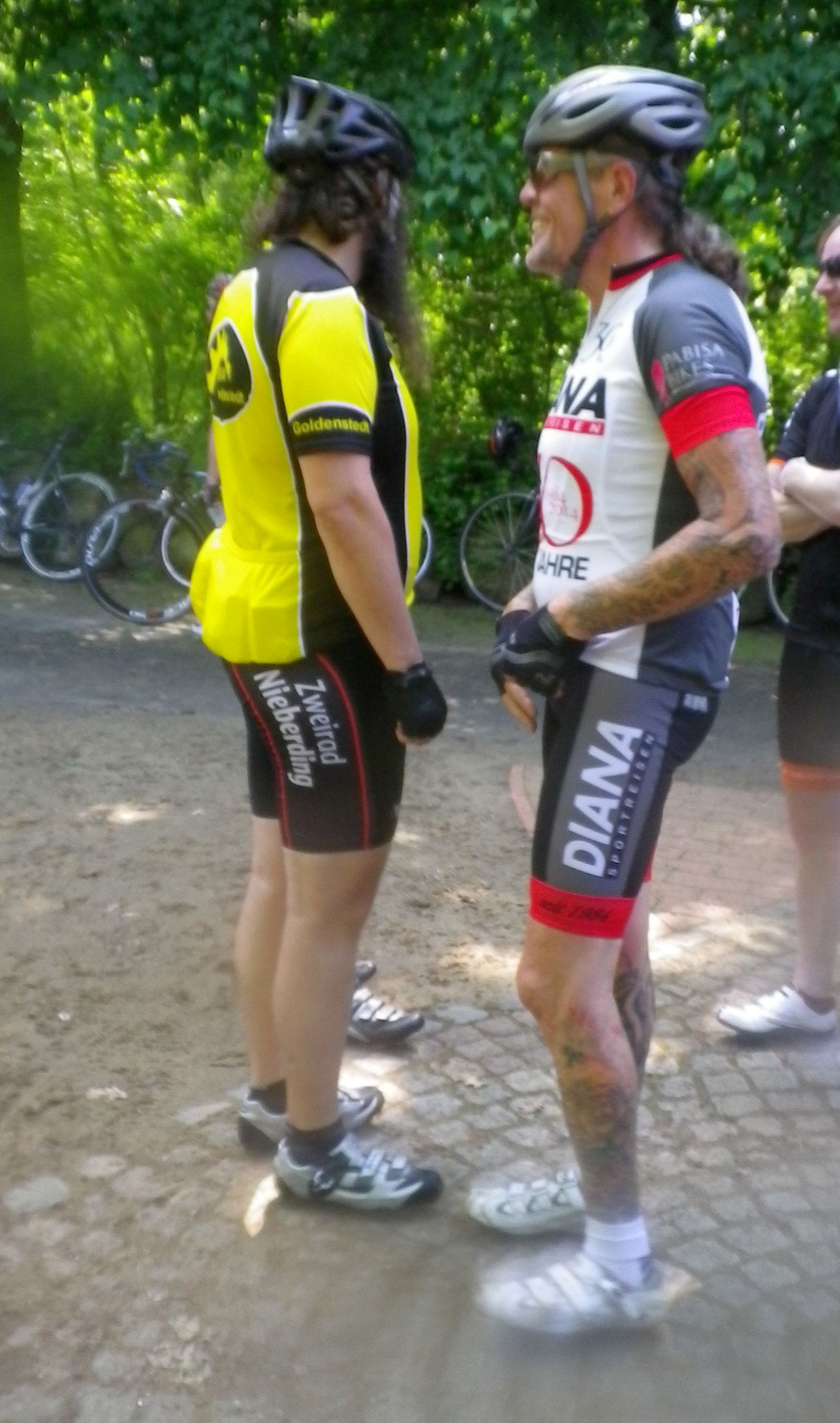 mal wieder ein sehr amüsanter Bericht (Bremen RTF). Die ewige ;-) Warterei auf ihn war schlimmer als meine Rückennummer. Wie du siehst, habe ich es überlebt. Nach 6:15 Stunden konnte ich den Teufelslappen wieder abgeben. Hab mich auch sehr gefreut, dich mal wieder zu sehen. Hochachtung, dass du trotz tieferer Kenntnisse über die Bedeutung meiner Rückennummer (Tetraphobie) mit mir gefahren bist. Ehrlich gesagt konnte auch ich den Tod riechen bei unserer Aufholjagd auf dem Kuhgraben. Waren da ja nur noch 210 km für mich. Deinen Abschiedsruf hab ich leider nicht gehört. Ich dachte, du fährst die 160er-Runde.