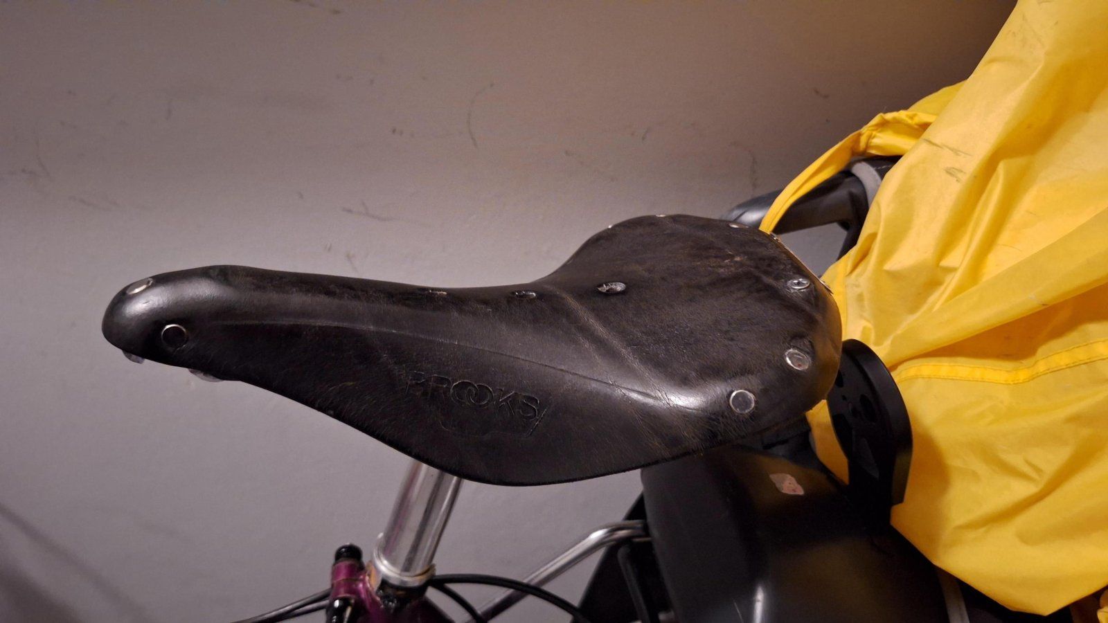 (Hier sieht man auch das einzige, was mir am GB nicht so gut gefällt: Das Oberflächen-Finish ist bei Brooks irgendwie etwas schöner - der GB wird relativ schnell etwas spröde, vor allem nach Fahrten mit viel Regen. Aber das ist eine rein kosmetische Angelegenheit und letztlich Wurscht).