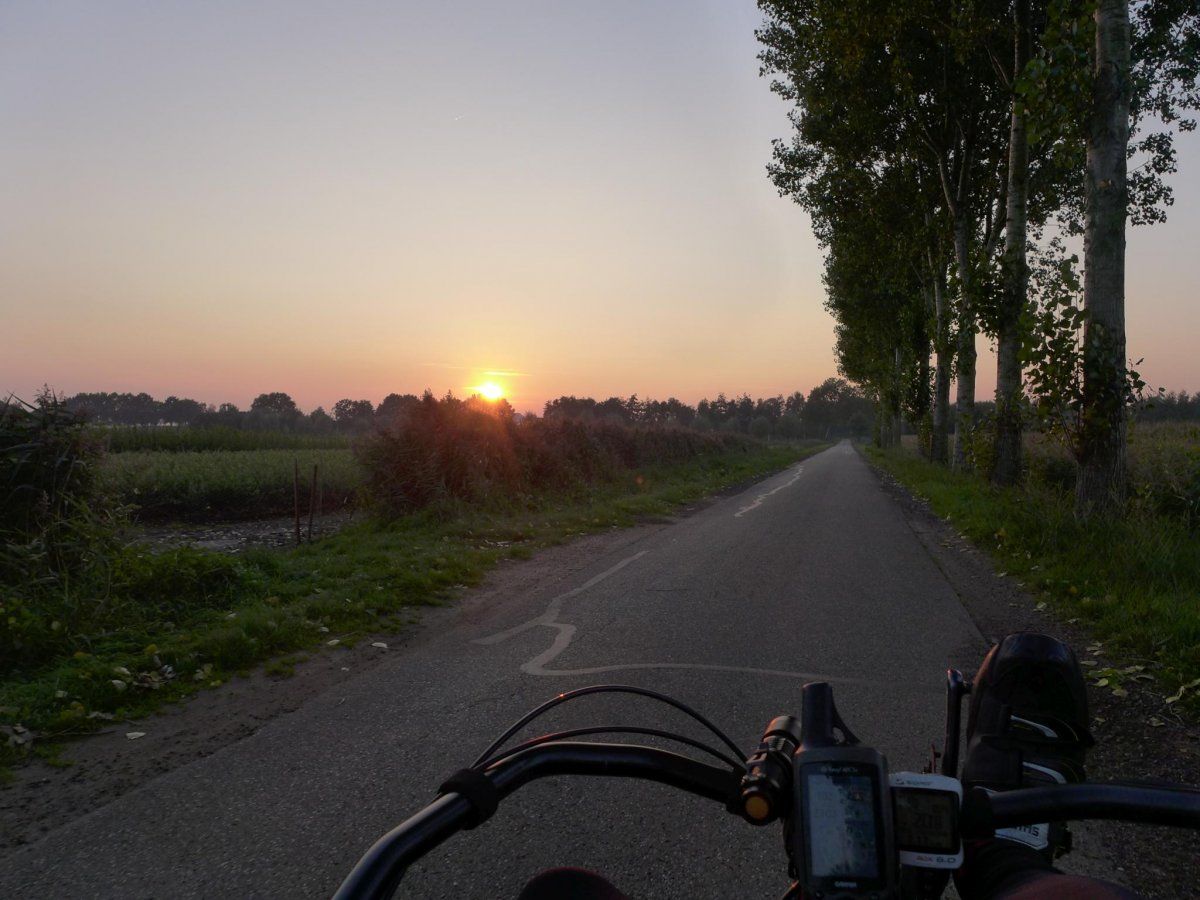 Vierhouten und als die ersten Schimmer des Grauens am Morgen sich am klaren Himmel ankündigen, geht es in Richtung hügeliger Heidelandschaft. Der Morgen erwacht, die ersten Menschen sind aktiv und fahre immer noch. Es ist kalt, ich bin müde und der Bananensaft inzwischen verbraucht, Frikadellen sind noch 2,5 da, die Finger sind übewiegend warm, der Wind schlägt nicht so schlimm zu, wie befürchtet.