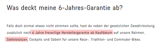 Der Vergleich mag hinken, ABER, am aktuellen Ultimate kann man leider nicht mal auf ne Stütze ausweisen sondern ist auf Canyons Support und dessen Wartezeit angewiesen. Mir gehts nicht drum das ein Rad perfekt ist und man in 10 Jahren nichts neu machen muss, aber mich nervt wenn etwas schnell kaputt wird und ich es dann nicht mal ersetzen kann..