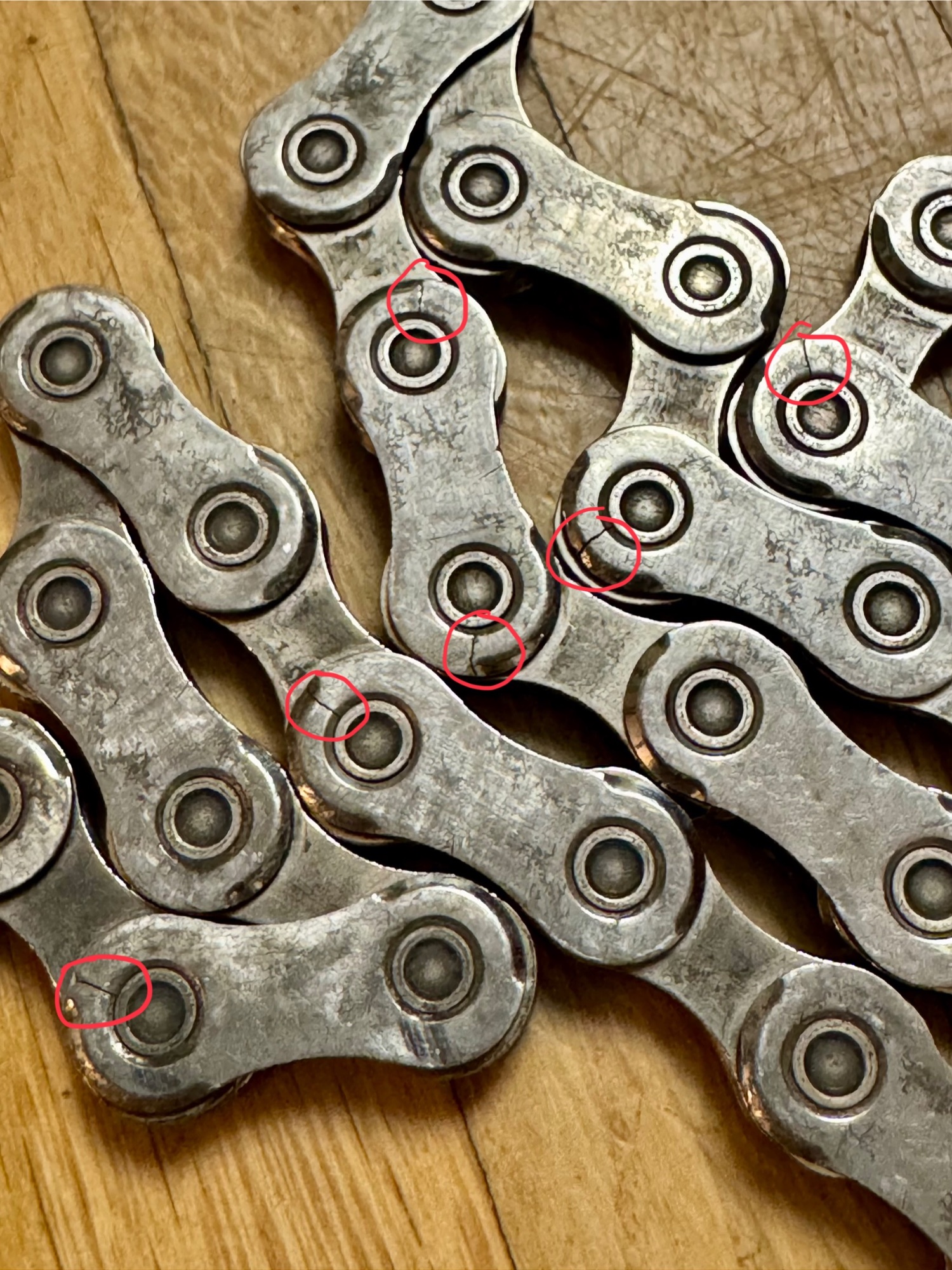Kleines Update: ich wollte inzwischen die Kette mit einem Kettenschloss wieder verbinden und weiter nutzen aber nach der Reinigung sind mir noch weitere 9 Risse aufgefallenWährend ihr alle das warme Wetter genießt, hab ich mir den Knöchel verstaucht, weil mir bei der allerersten Ausfahrt nach einem Umzug die Kette gerissen ist