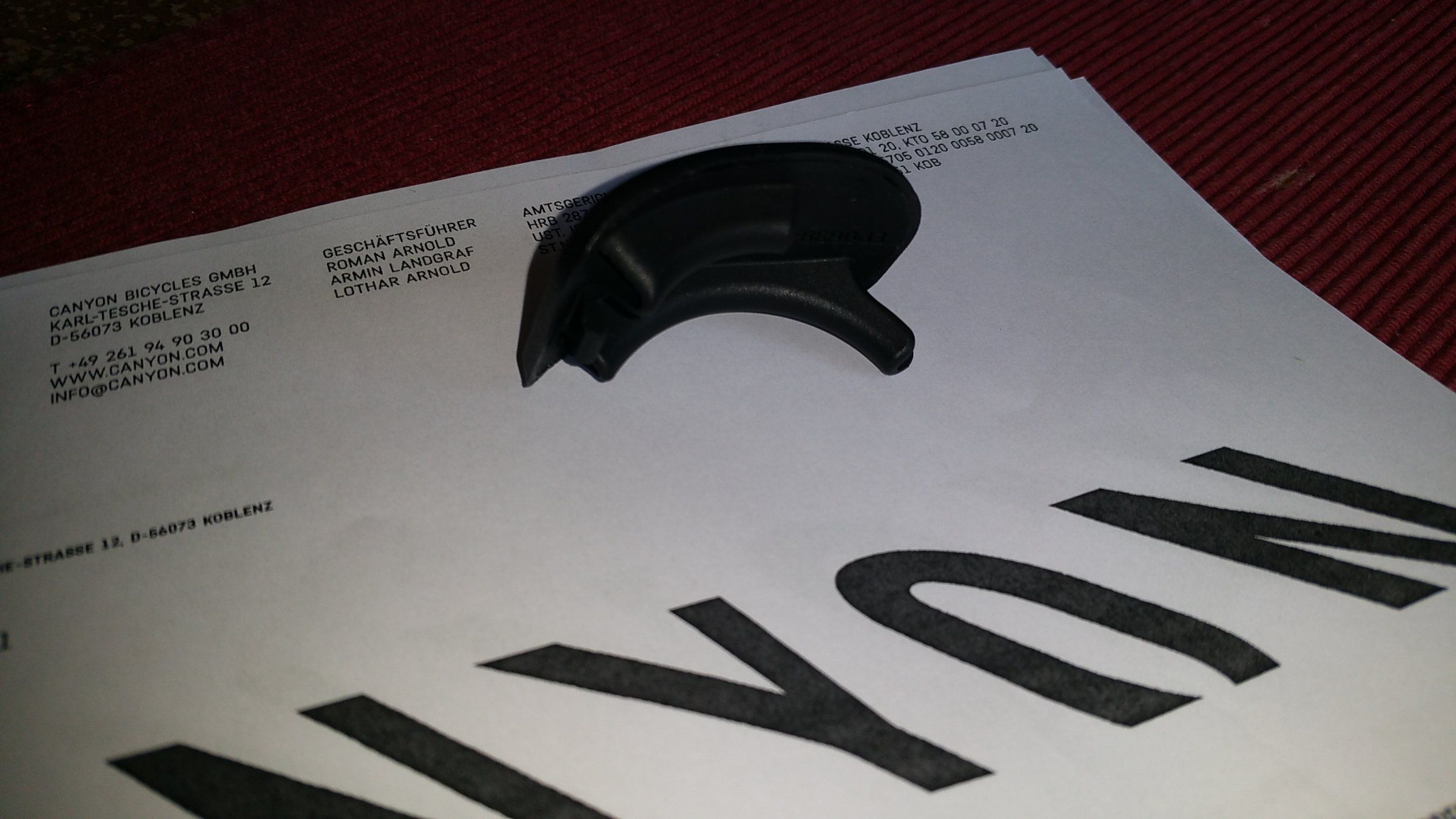 Update: nach fast exakt 1 Monat ist das Ersatzteil jetzt gekommen! Und o Wunder: es ist tatsächlich verbessert! Deutlich dickere Grundplatte, außerdem jetzt geschlossen. Canyon wusste/weiss also, dass das ursprüngliche Teil nicht haltbar ist. Kann nur jedem der noch das dünne Ding verbaut hat empfehlen, das Ersatzteil zu bestellen und schnellstmöglich einzubauen.