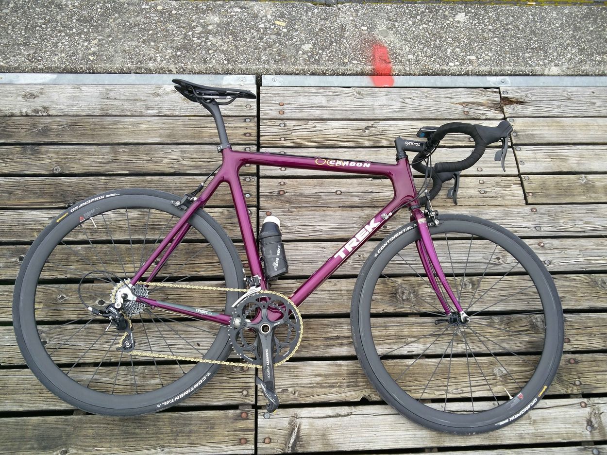 [meines Wissens baute Aegis Bicycles für TREK das 2500 das noch ganz in der Tradition der geklebten Rahmen mit Alumuffen. Bei den TREKs kenn ich mich so aus da bin mir nicht sicher welcher Rahmentyp damals die verlamentierten Carbonmuffen hoffähig machte, aber der 5000 sieht für mich nach einem typischen Aegis Design aus.