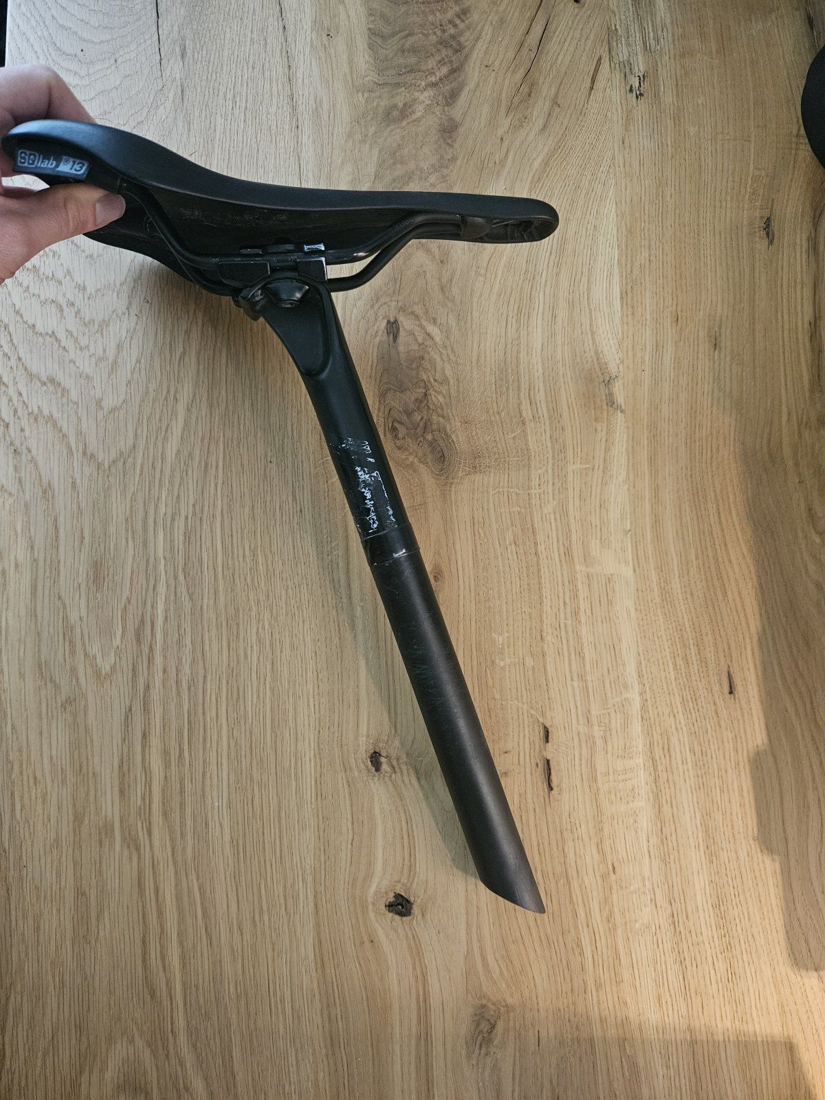 Sattel n gutes Stück weiter im Sattelrohr, allerdings ist das schon etwas länger her. Könnte mir vorstellen, dass die Quetschung etwas nach oben (unter das Klebeband) gewandert ist und beim anbringen des Klebebands noch nicht da war.