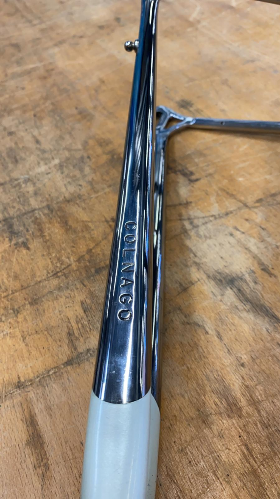 Heute bin ich wie die Jungfrau zum Kind an ein leicht verrostetes Kotter gekommen. Ein ideales Objekt um mal einen kleinen Vergleichsversuch am Chrom zu machen. Ich nahm mir den am stärksten korrodierten Bereich vor und zwar die Innenseite der linken Kettenstrebe.