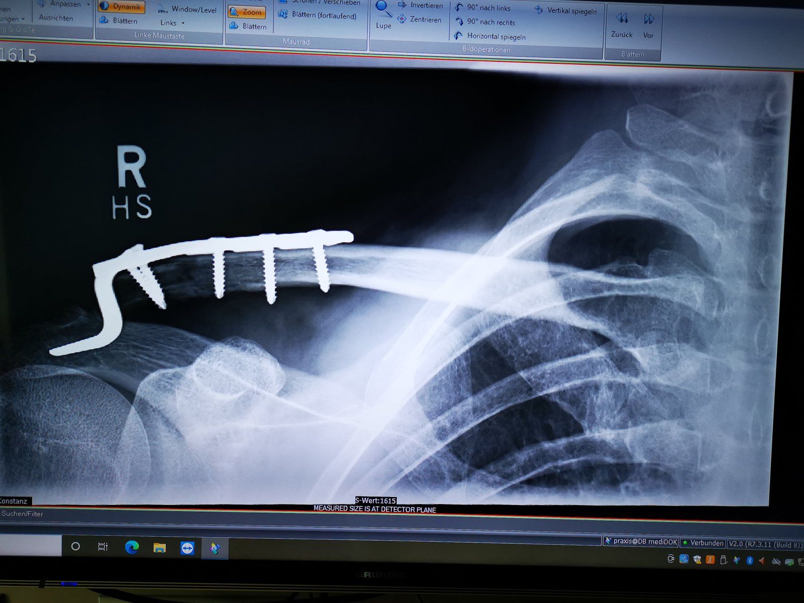 helm) und Rechte Schulter auf. Frau blieb zum glück unverletzt. Normale Prozedur: Polizei, Krankenwagen und dann Notaufname. Frau bekam 25€ Strafe, falsche Richtung mit unfall. Ergebnis bei mir: Schlüsselbeinbruch lateral (3cm vor dem Gelenk)