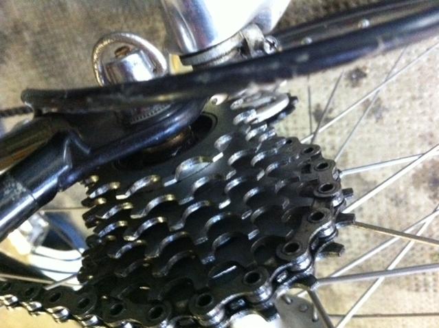 Also: Das ist eine 8-fach Schraubkranz (mehr als 8 Ritzel gibt es dafür auch nicht) - eben mit 8-fach Abständen, d.h. im rechten Ergopower ist keinesfalls 9-fach Mechanik enthalten, sonst würde es nämlich kaum einen passenden Schaltschritt geben.