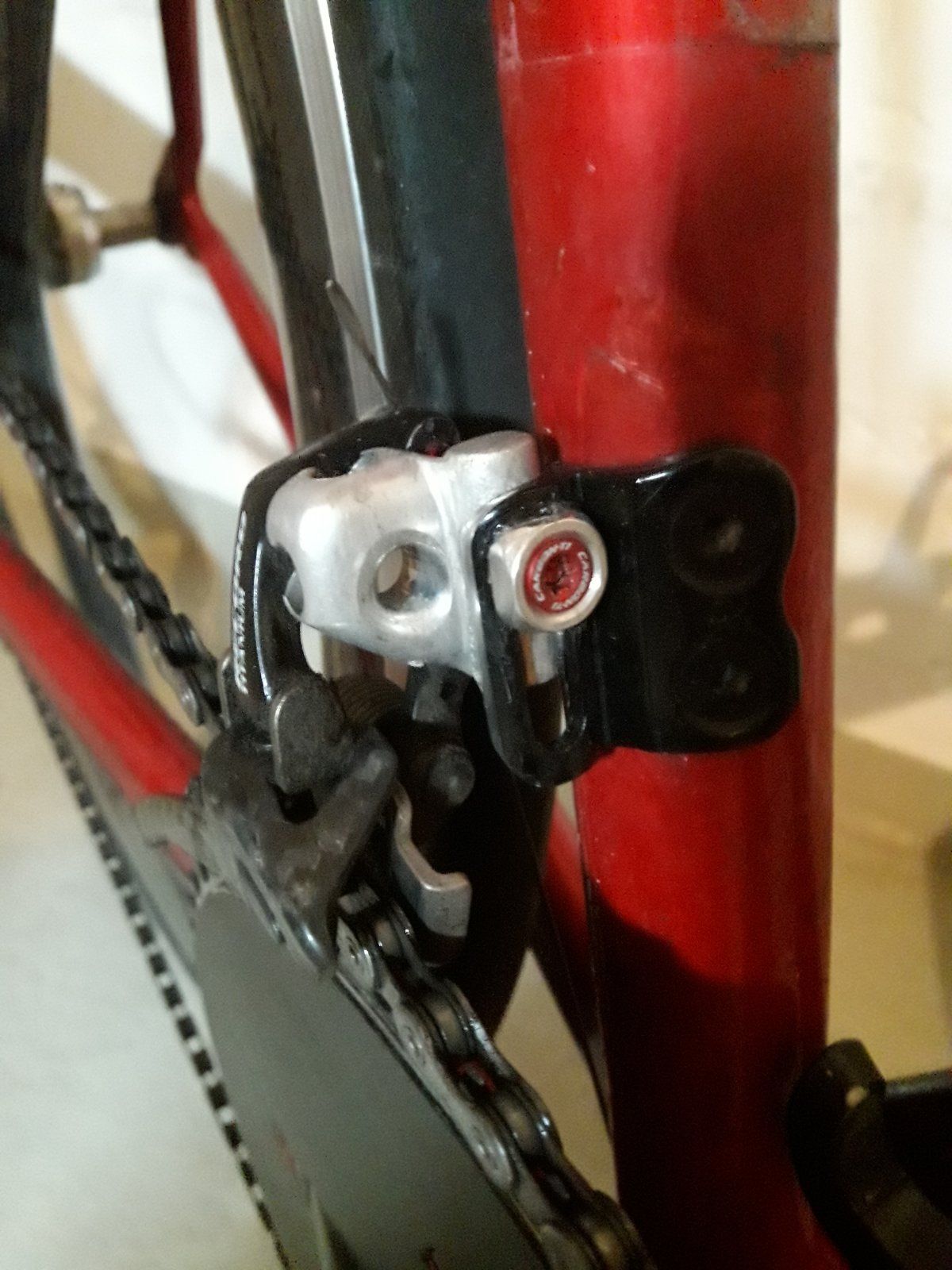 Zwei Fragen: Der freistehende Achsstummel des Schnellspanners kommt aber noch weg, oder? Und die Schaltzug-Justierschraube, ist die schon aus Alu, oder ist das noch der originale Gewindeeinsatz nebst Einstellschraube aus Stahl? Den Einsatz hatte ich an meiner Schaltung rausgedrückt, einen M5er Regel-Gewindeeinsatz passend geschliffen und eingeklebt, um dann eine (passend zum rotmetallic lackierten Rad) Schaltzug-Trimmschraube zu verwenden. Hier noch die Bilder des "Skeleton-Umwerfers":![]()