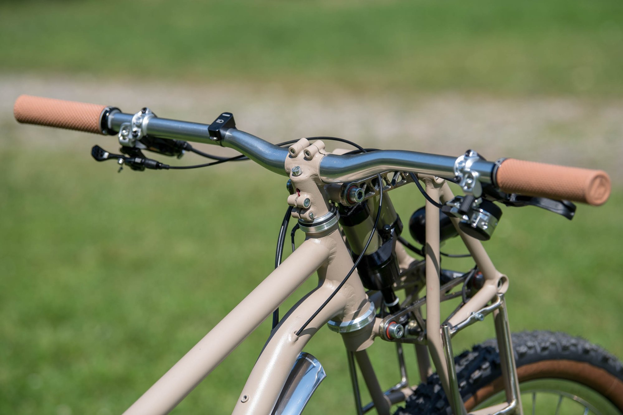 Dei Verarbeitung ist ziemlich robust geraten. Obwohl es nette Details gibt, scheint der Rahmen nur grundiert. Die Innenverlegung der Kabel gefällt mir nicht so gut. Einmal, weil das umständlich zu reparieren ist, aber zum Andern auch, weil Wasser und Dreck in den Rahmen gelangen können.