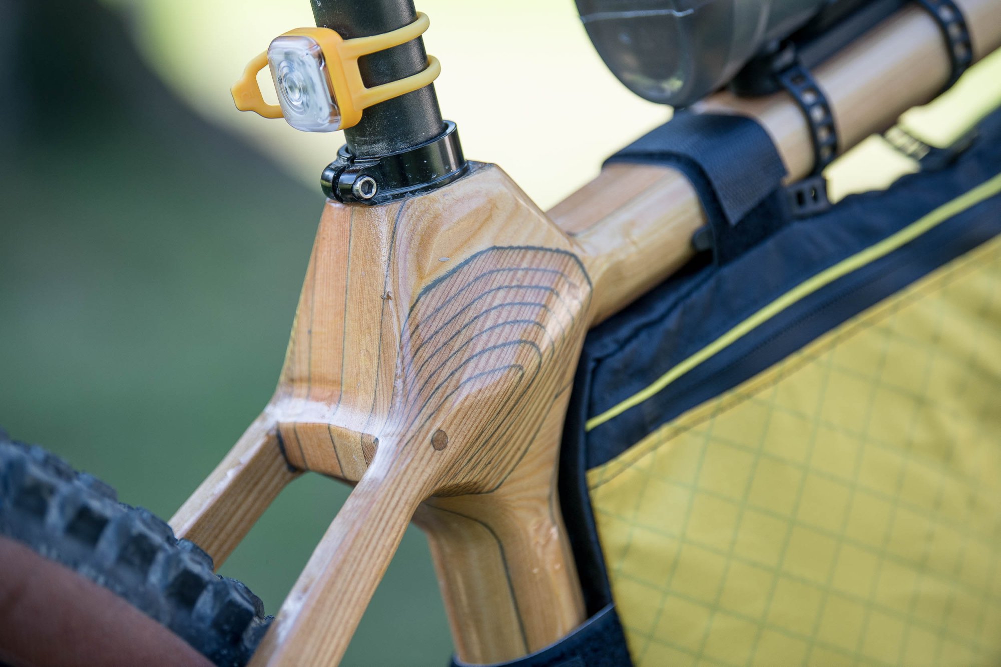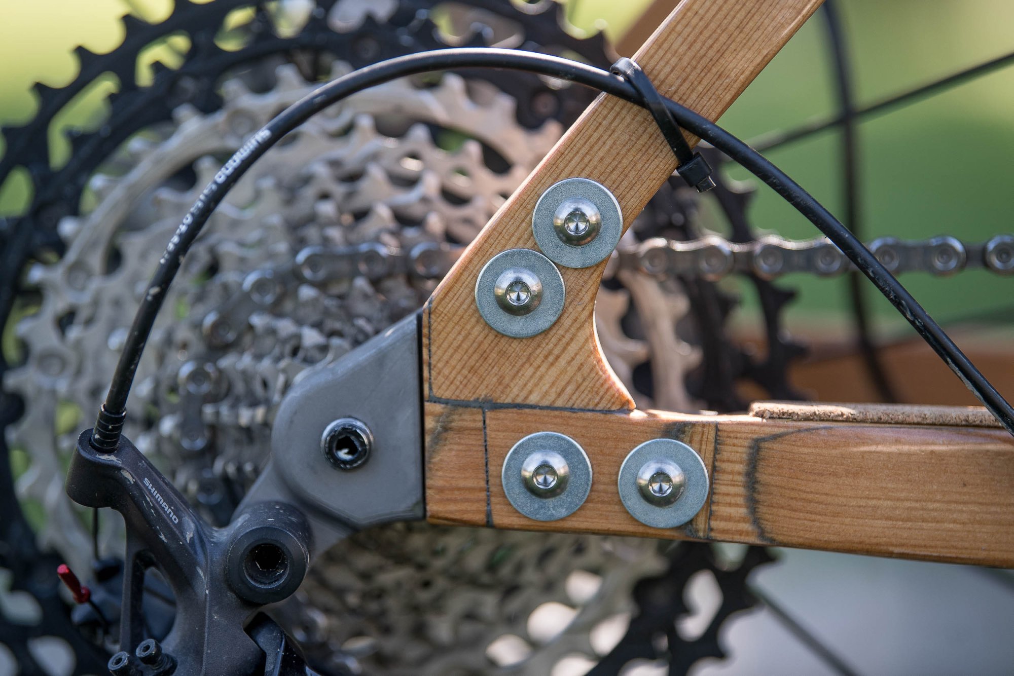 Was soll man dazu sagen? Im Vergleich zu einem Stahl- oder gar Titanrohrrahmen (und eigentlich jedem anderen Rahmen) ist ein Massivholzrahmen immer ein Schwergewicht. Leichtes Gepäck macht das Paket nicht für den Zweck tauglicher. Wir sehen schönes Handwerk, mit Abstrichen bei der Montagequalität.