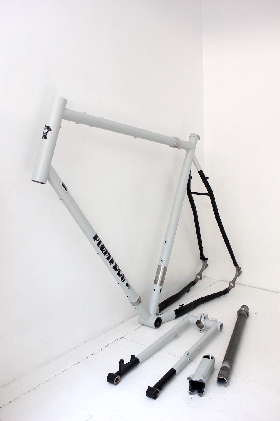 Purple Dog ist eben der Punk-Hund unter den RahmenbauendenDer Rahmen ist wirklich nicht schön gemacht. Wenn ich mir die ungleichmäßigen Schweißnähte, die offenen Rohre und gequetschten Enden ansehe, wirkt das eher billig und nicht besonders hochwertig. Da möchte ich echt keinen Rahmen von haben.