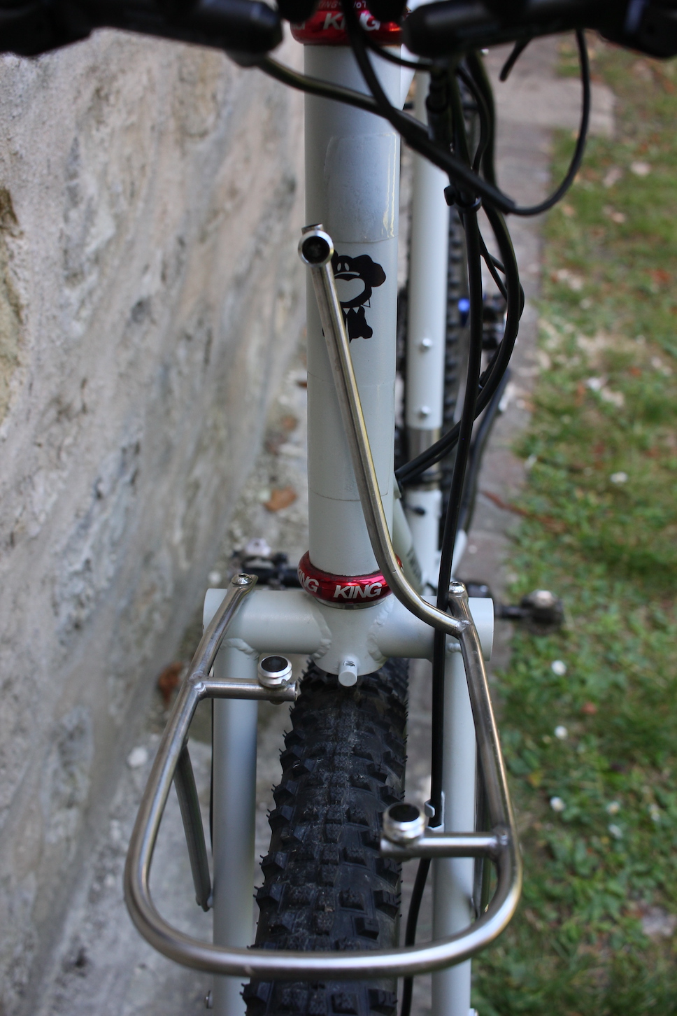 Auch die Gabel ist teilbar. Das Kopfrohr hätte man aber versstöpseln können. Aber die Idee ist nicht ganz schlecht, denn das kann die Durchführung von Lichtkabeln erleichter, was hier aber nicht konsequent genug genutzt wurde.