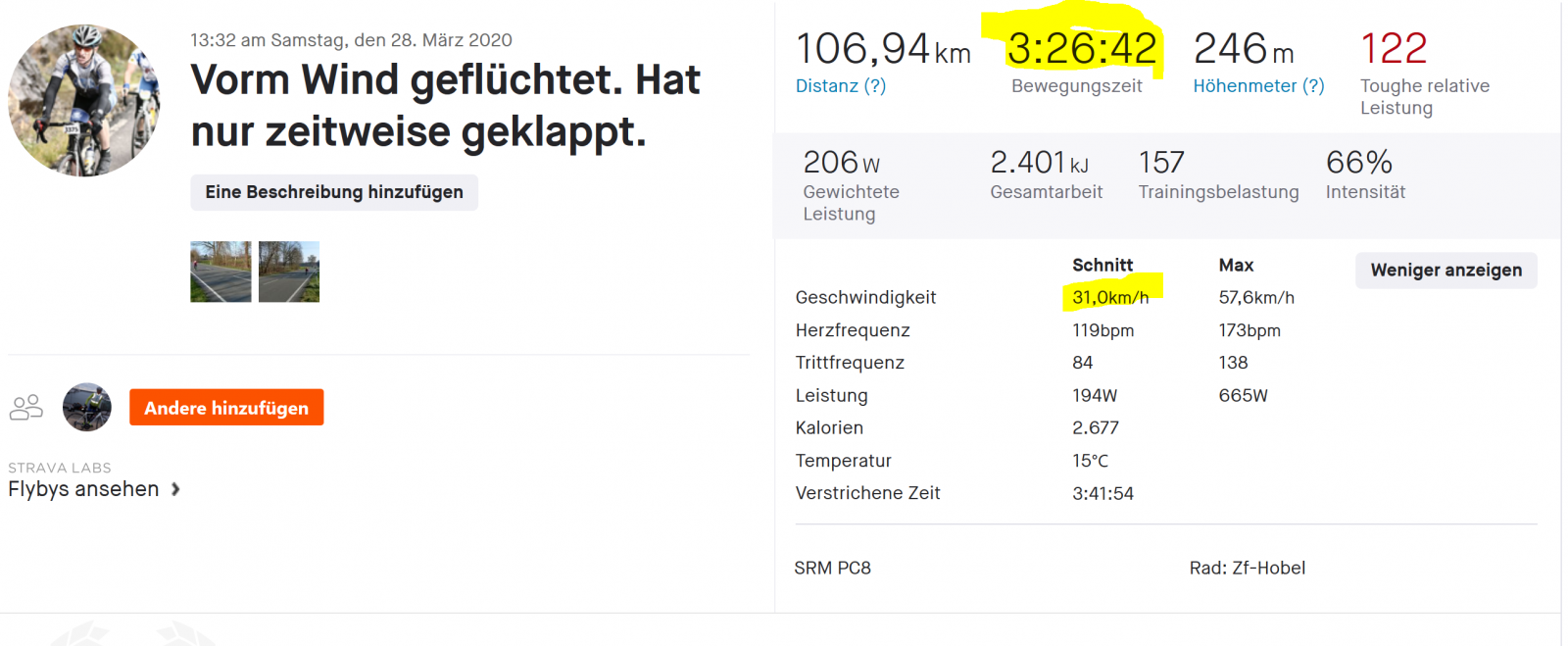 Die Motivationsliste entstand aus der Frage wer über 90 Minuten einen 30er Schnitt derzeit fährt.