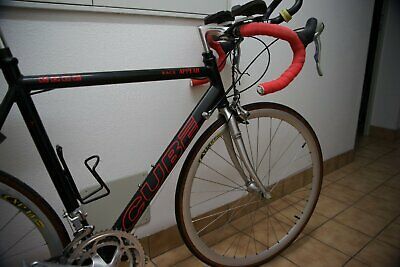 Das war ein spezielles Triathlonmodell,das aufgrund seiner vertrackten Geometrie(flacher Steuerwinkel,steiler Sitzwinkel,effektiv extralanges Oberrohr) nicht als normales Rennrad nutzbar ist.