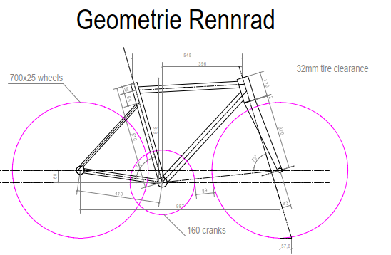 Wer bei 173 cm mit 79er Beinen einen ca. 52er Rahmen bauen will, hat aber normalerweise einen lang genugen Oberkörper für ein vergleichsweise langes Oberrohr und kann dadurch einen brauchbar steilen Steuerrohrwinkel planen. Ich kenne das ja.