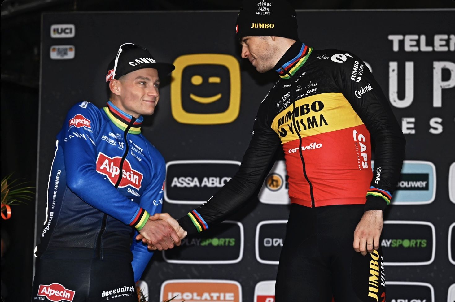 MvdP wirkte auf mich heute etwas stärker, aber eben mehr Fehler bzw Pech. Als er zwei Runden vor Schluss im Wald vor der steilen Abfahrt vom Rad musste, hatte er WvA schon in den Seilen.