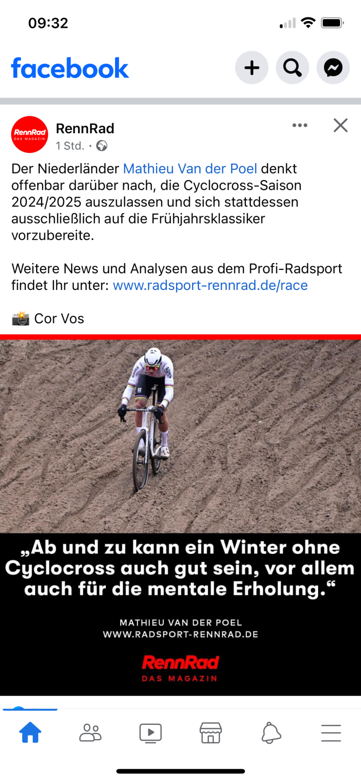 Das stimmt; ich glaube aber dass der erst mal gänzlich mit der Klassiker-Saison beschäftigt ist und CX in nächster Zeit nicht ernsthaft auf dem Zettel hatNaja, und wenn Wout auch noch mal auf die Idee kommt, dass das Regenbogentrikot doch ganz chic ist, reicht so ein Quick&Dirty-Auftritt auch nicht.