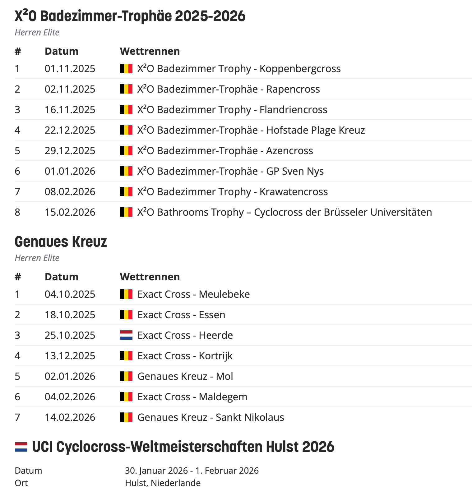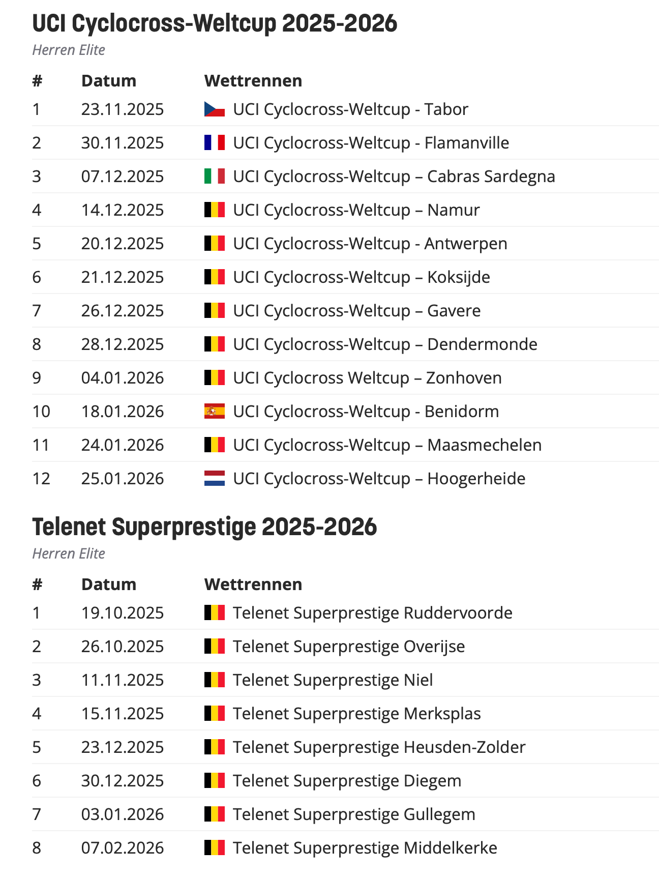 Hier gibt es Informationen zum Rennkalender für die Saison 2025/2026: