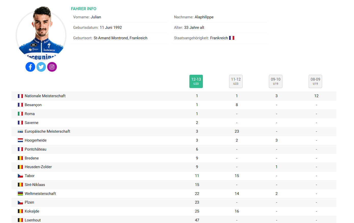Hmmm, ein Alaphilippe war in der U23 eigentlich recht erfolgreich im Cross. Er hat sich dann, wie in Frankreich sehr üblich, auf die Straße festgelegt.Es ist nicht nur Alaphilippe...Gilbert, Boonen, Tepstra, Devolder...nur um ein paar der bekanntesten Namen zusenden. Haben die im Cross was gewonnen? Nix.