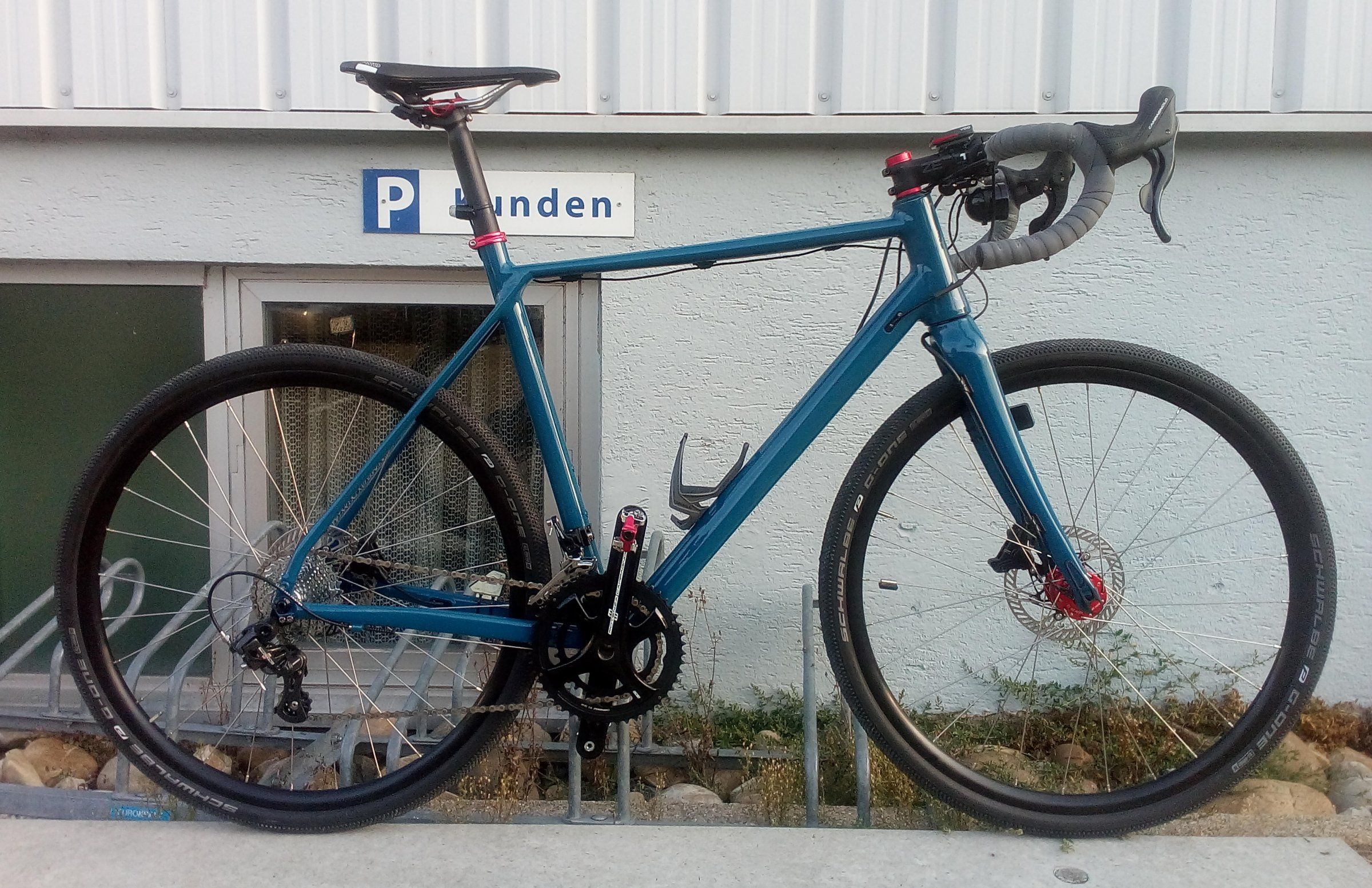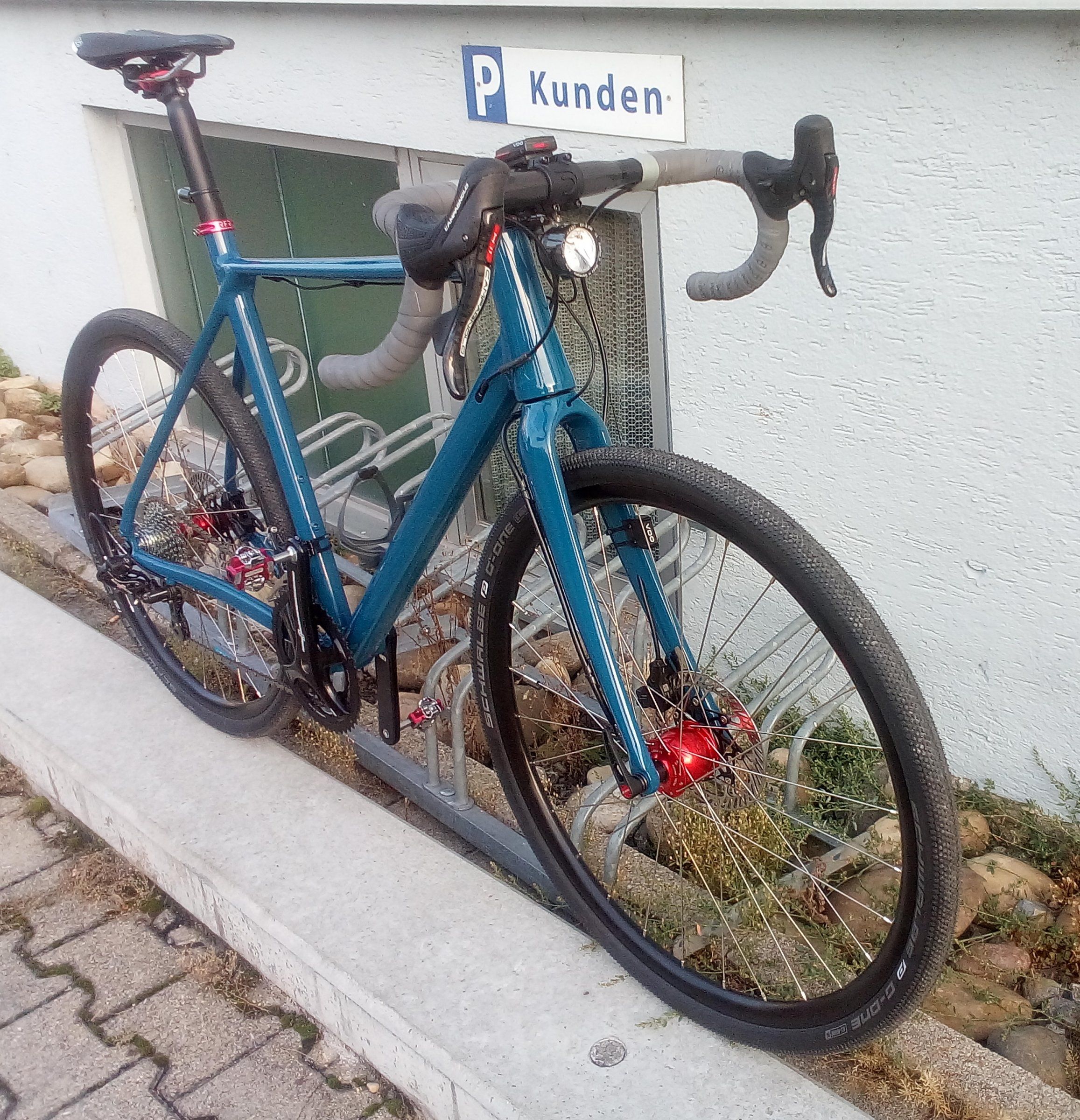 Also "was dazwischen". Ein CX. Weil ich zur Arbeit schon früh starte, hat auch dieses Rad festes Licht.