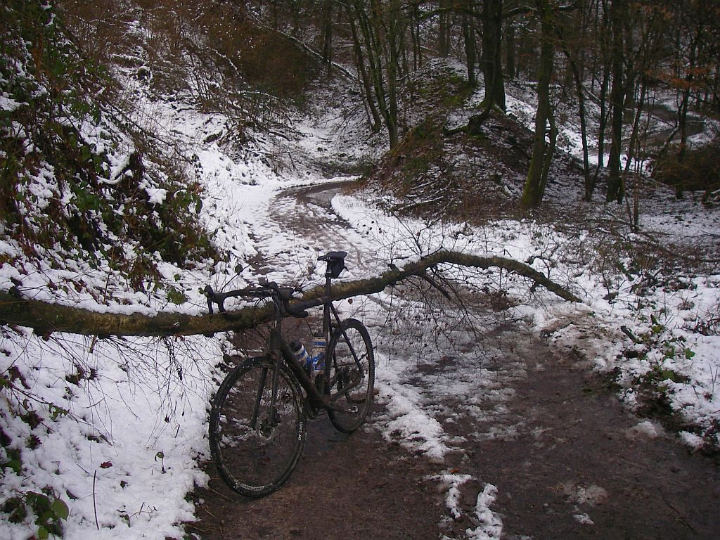 Mich muss wohl gestern der Teufel geritten habe. Bin blauäugig eine Crossertour aus dem Internet nachgefahren die in das Bergische Land ging bis hinter Gräfrath. Auch nicht so lang, aber ich hab völlig die Bedingungen auf den Wegen unterschätzt. Da lag ja Schnee. Wie kann denn so was ? :D