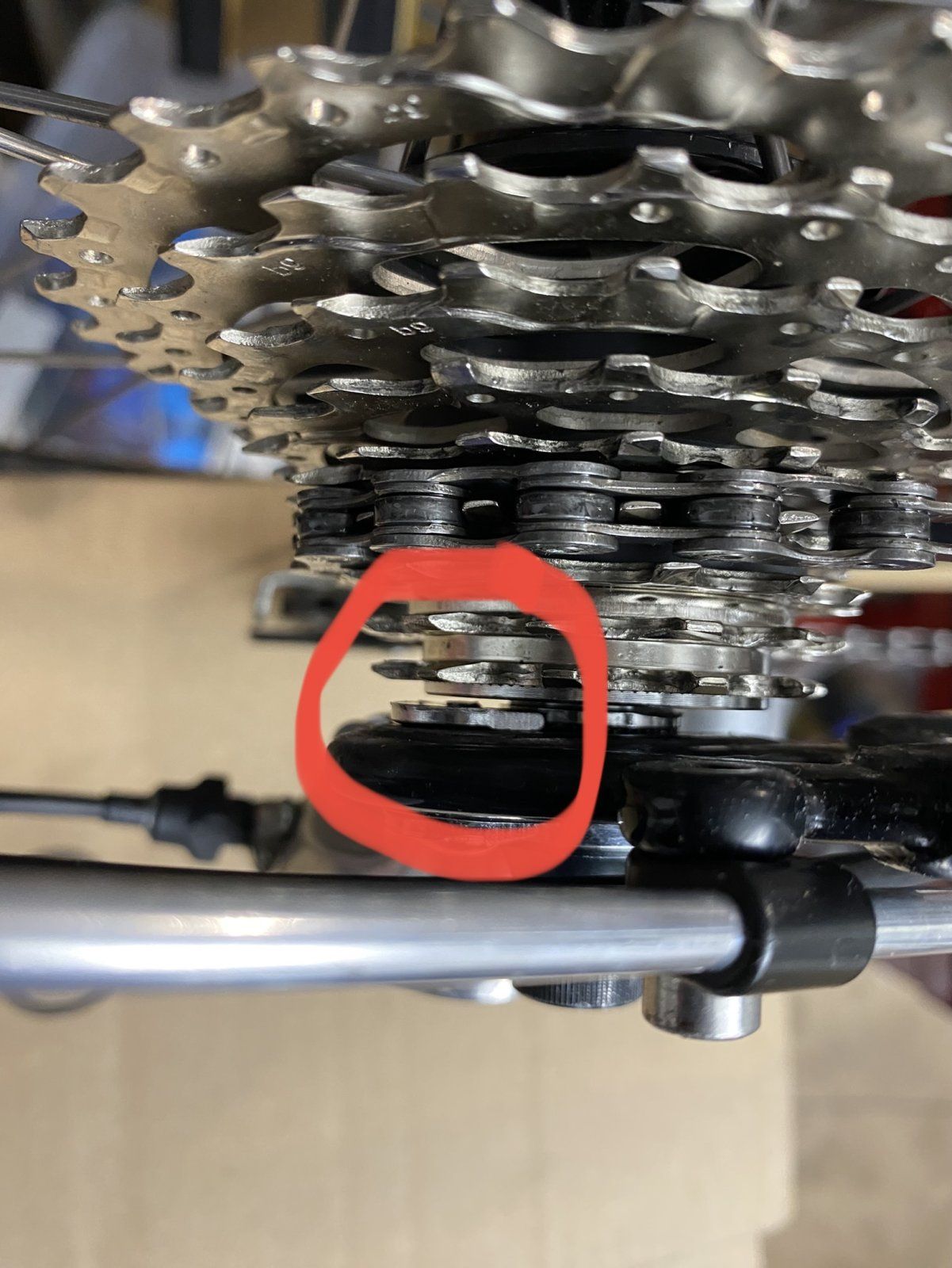 Leider wird das auf der Antriebsseite zu eng für die Kette: