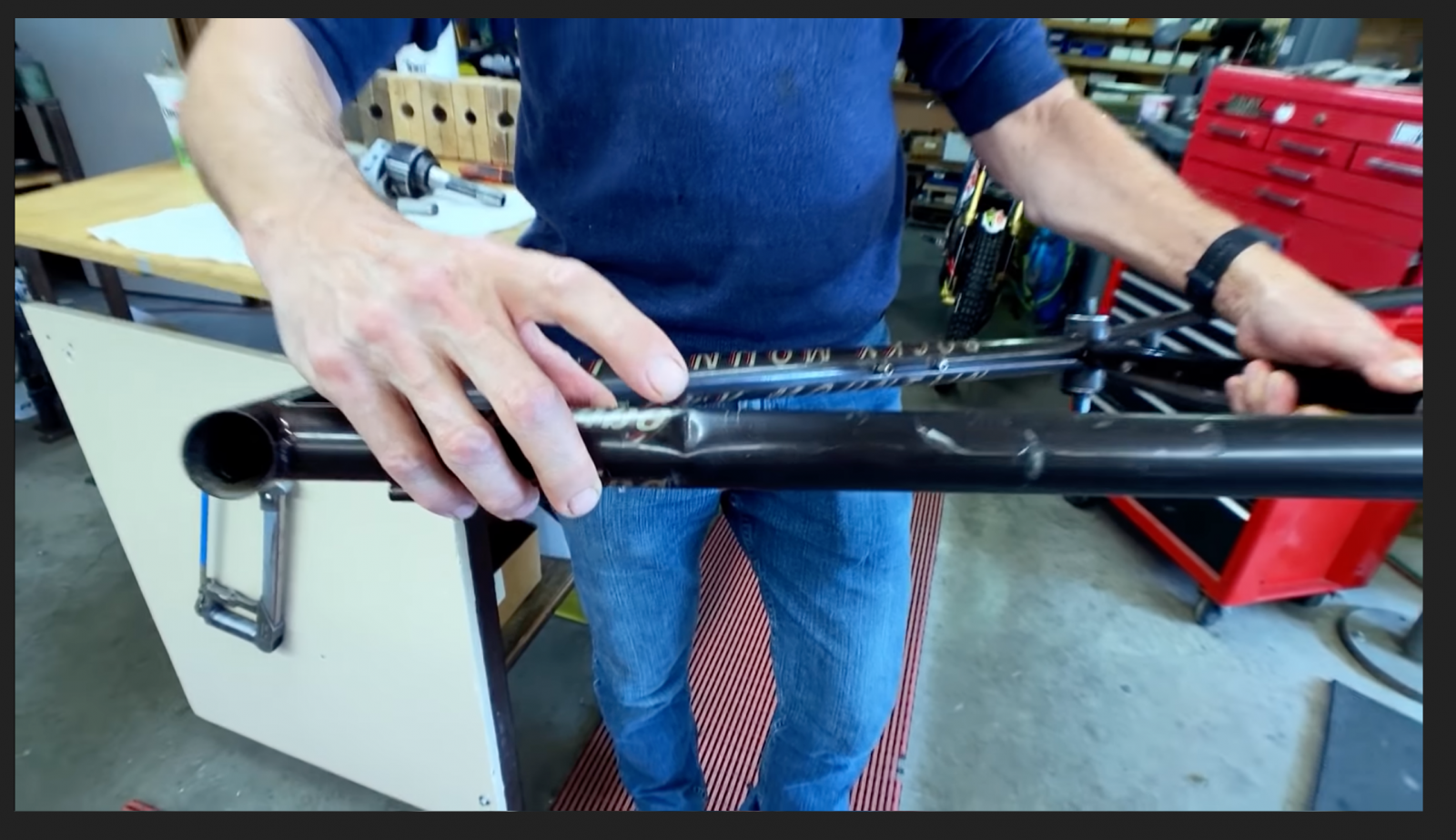 Und wegen der Delle im Oberrohr, mache ich mir schon weniger Sorgen. Jetzt wo ich – auch bei Brodie im Kanal – gesehen habe wie er eine Delle repariert, aber vor allem wie er die Beule bezeichnet, bin ich aber etwa beruhigt.
