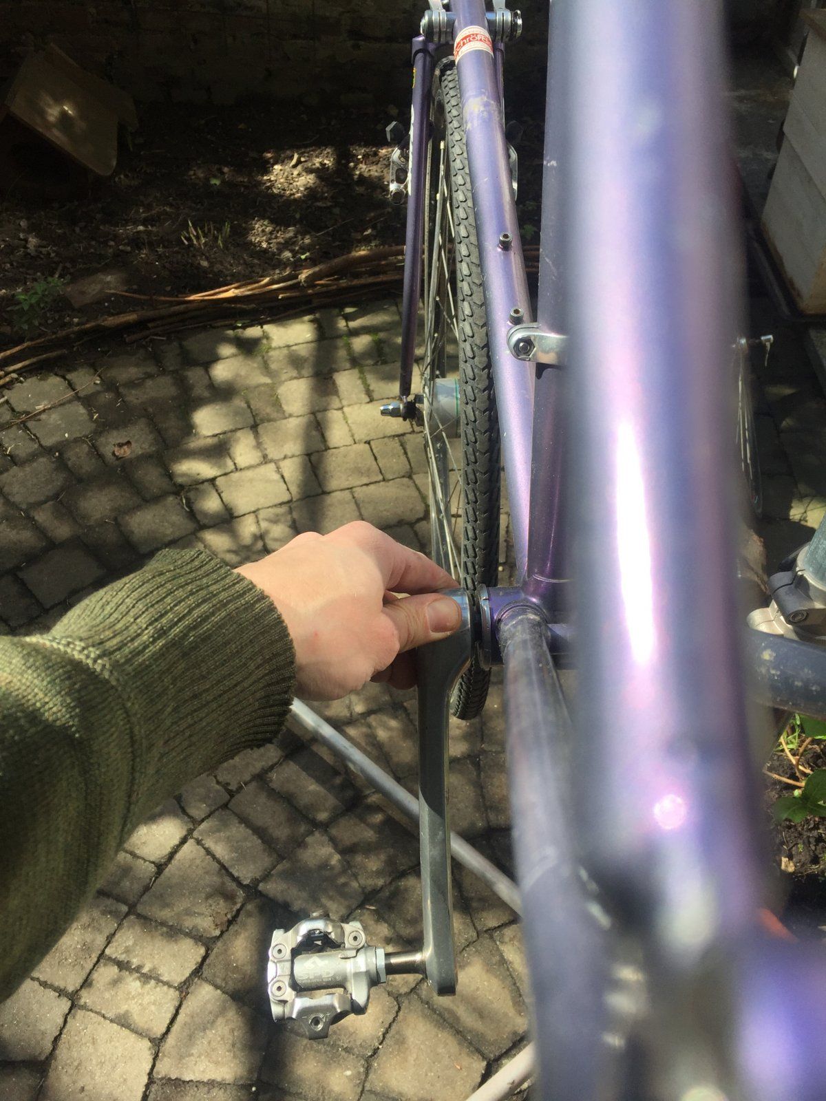 Kleines Zwischen-Update: Das der Rahmen krumm war und nicht nur das Laufrad habe ich noch mal gecheckt. Es ist beides … das Laufrad ist krumm, aber der Rahmen auch.