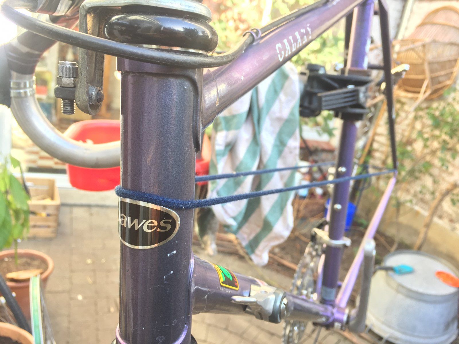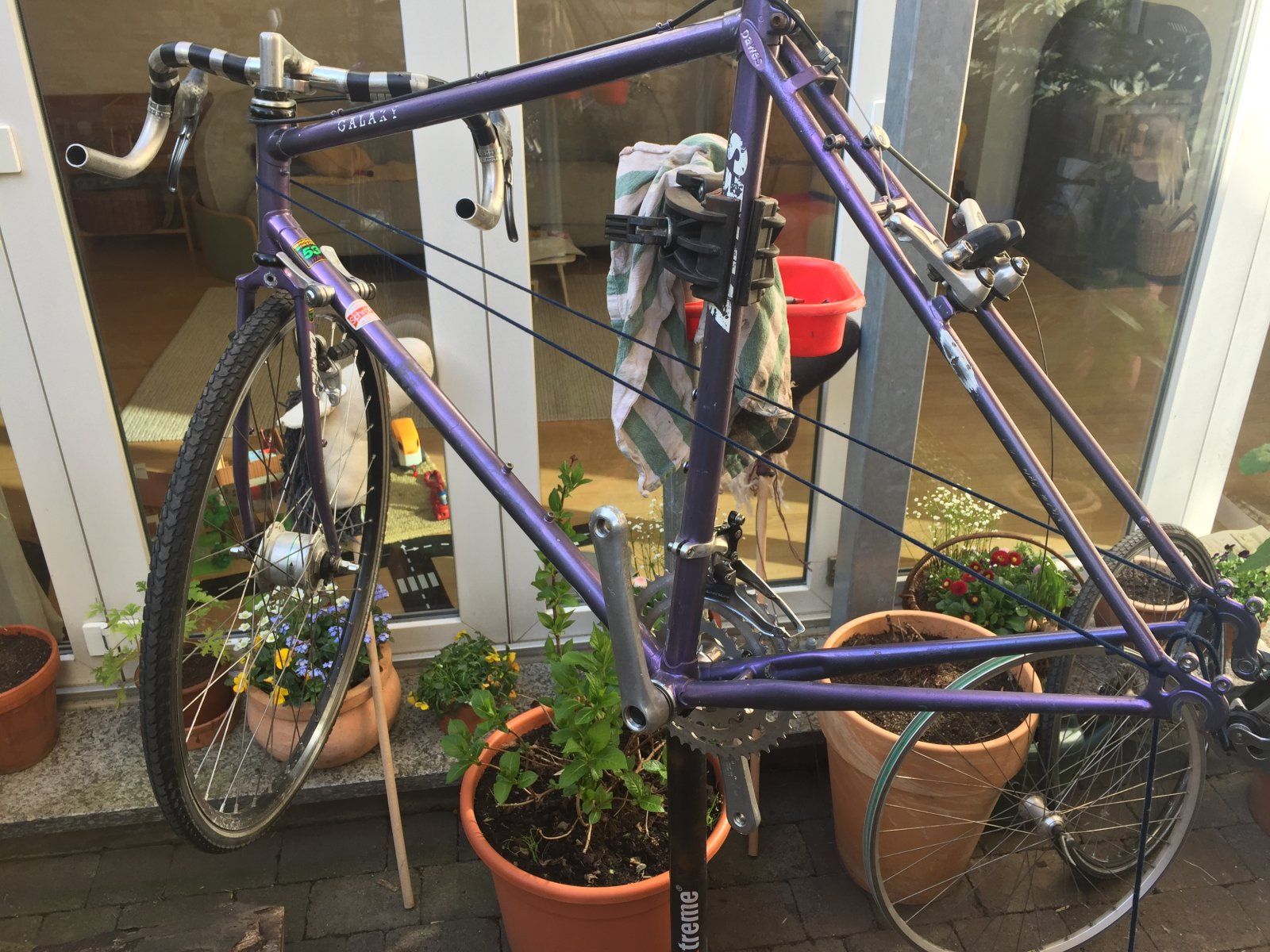 Ow, man … auf der andere Seite wären es mir glaube ich schon die Strapazen wert. Ich suchte schon länger ein etwas kleineres und kürzeres Rad. Dann konnte ich dieses hier für wenig Geld aufgabeln. Hat mir 70€ gekostet und zur Not würde ich das mit den Teilen auch schon wieder rauskriegen. Vielleicht freue ich mich einfach noch zu sehr und sehe das Ding noch etwas durch eine Lila-Rosa-Brille.