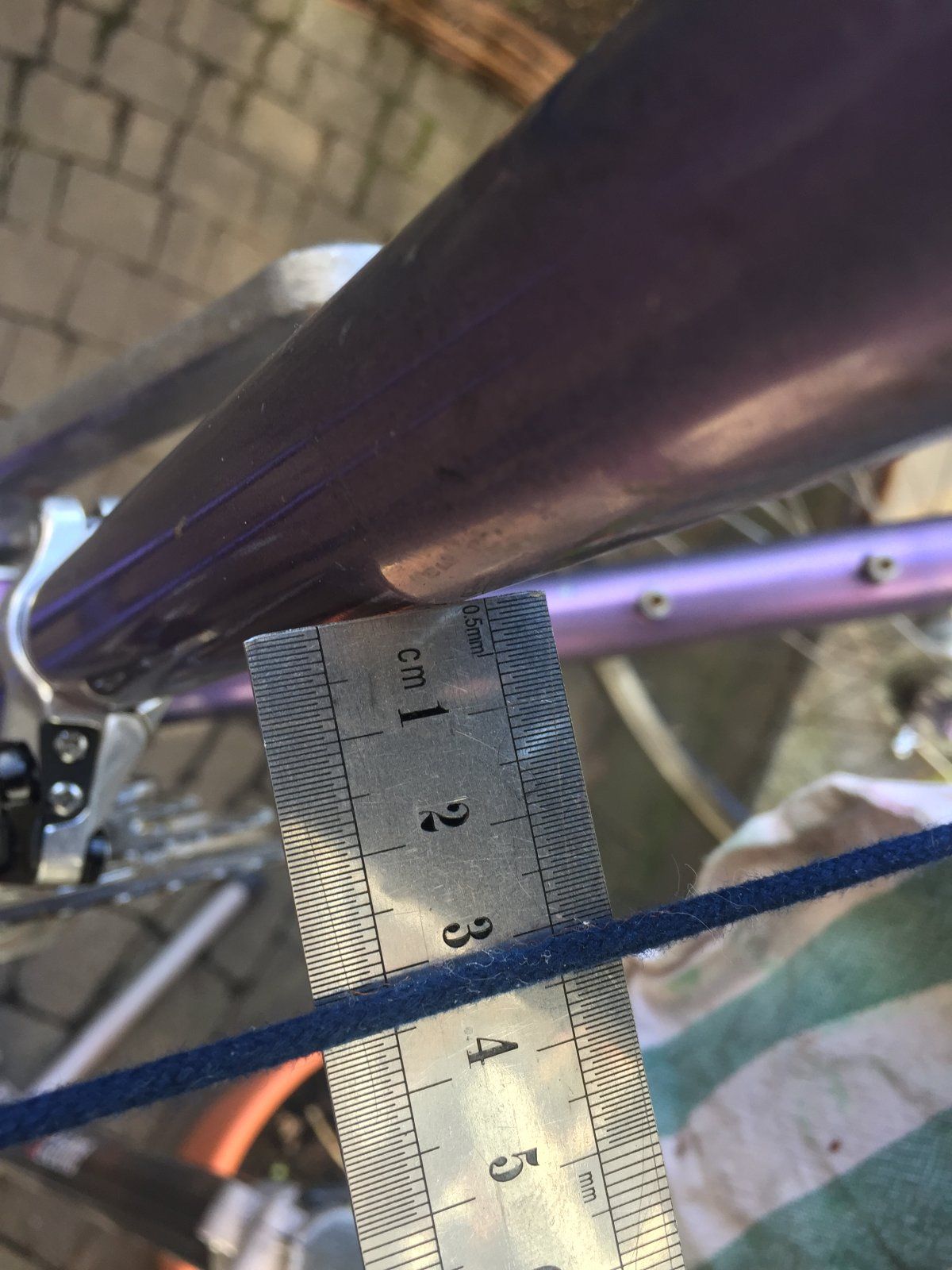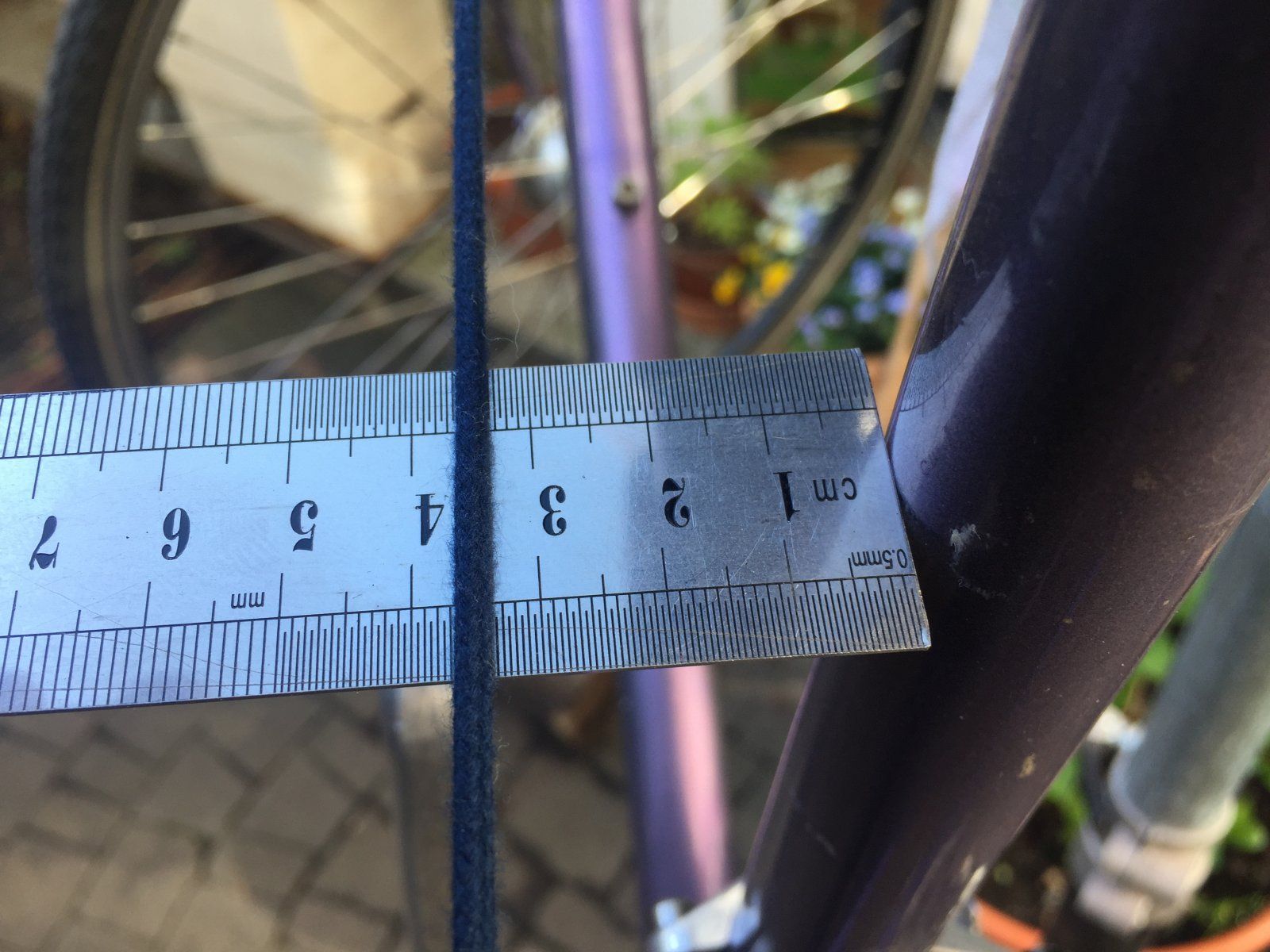Von der Schnur bis zum Sattelrohr waren auf der linken Seite etwa 36 mm: