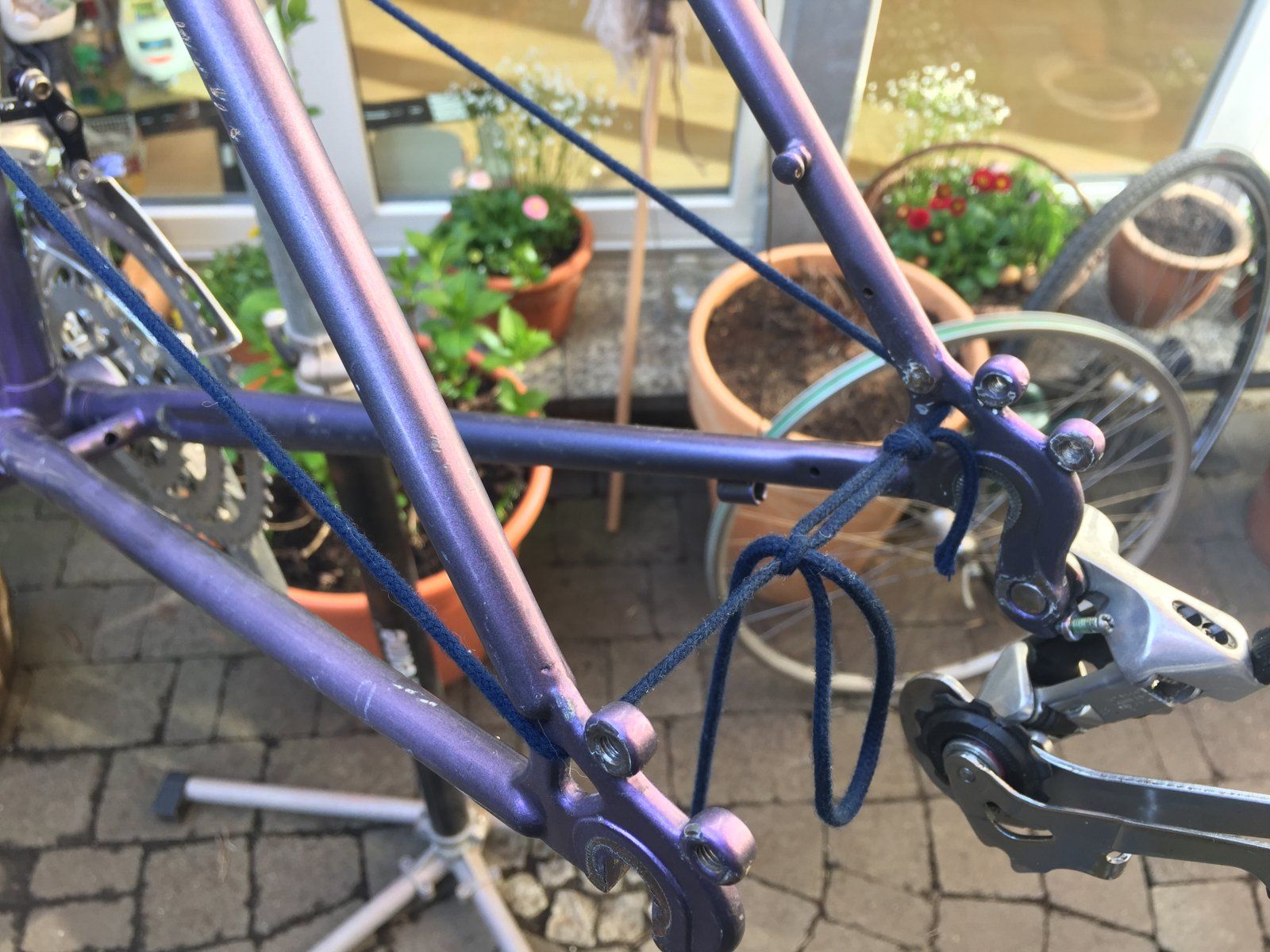Mit eine Schnur zwischen Steuerrohr und hintere Ausfallenden war die Abweichung gut zu messen.
