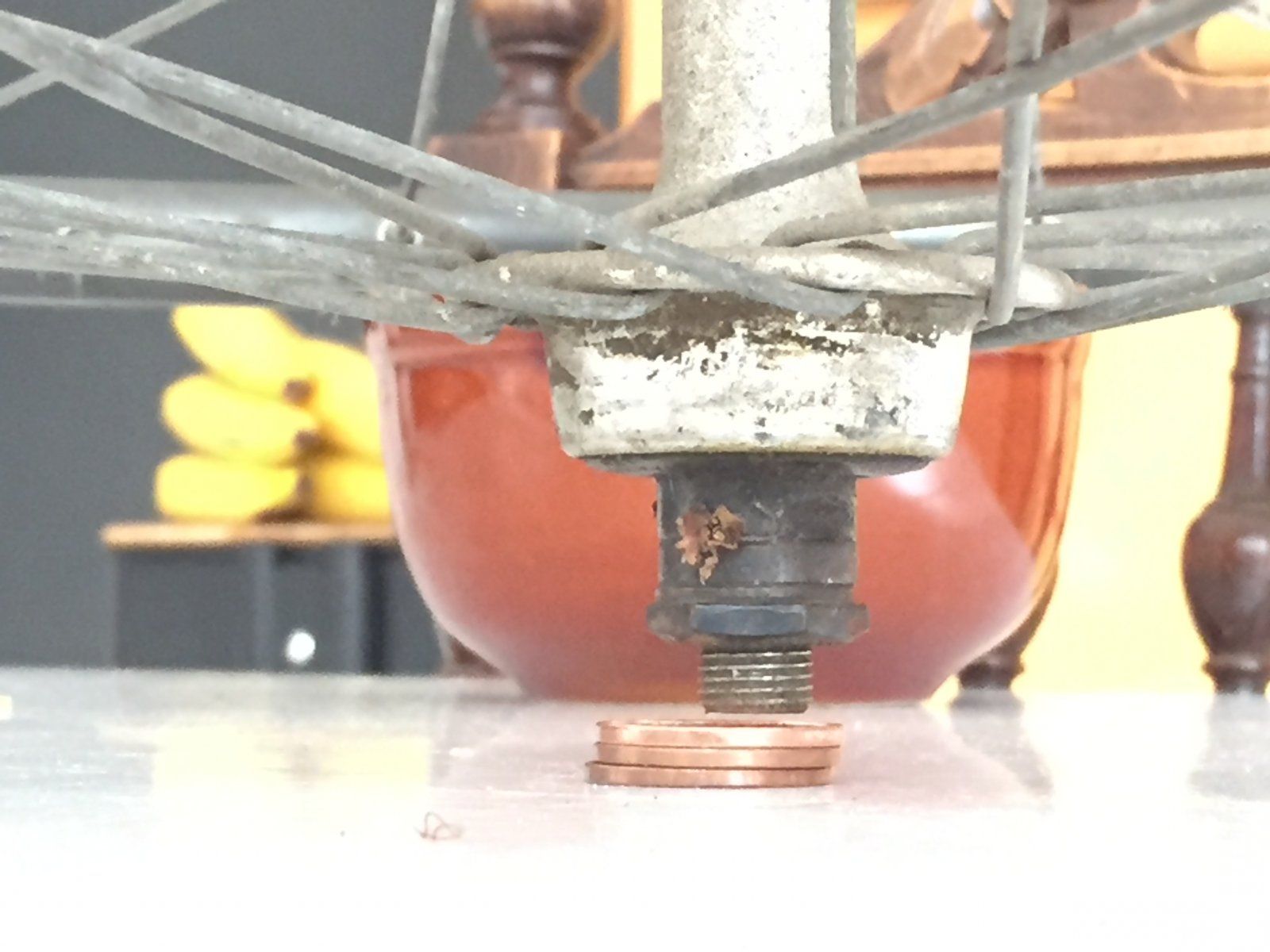 Gut, da ist jetzt eine Lücke zwischen Achsende und der Tisch. Paar Münzen dazwischen gelegt und die kleine Lücke habe ich einfach mal so gelassen.