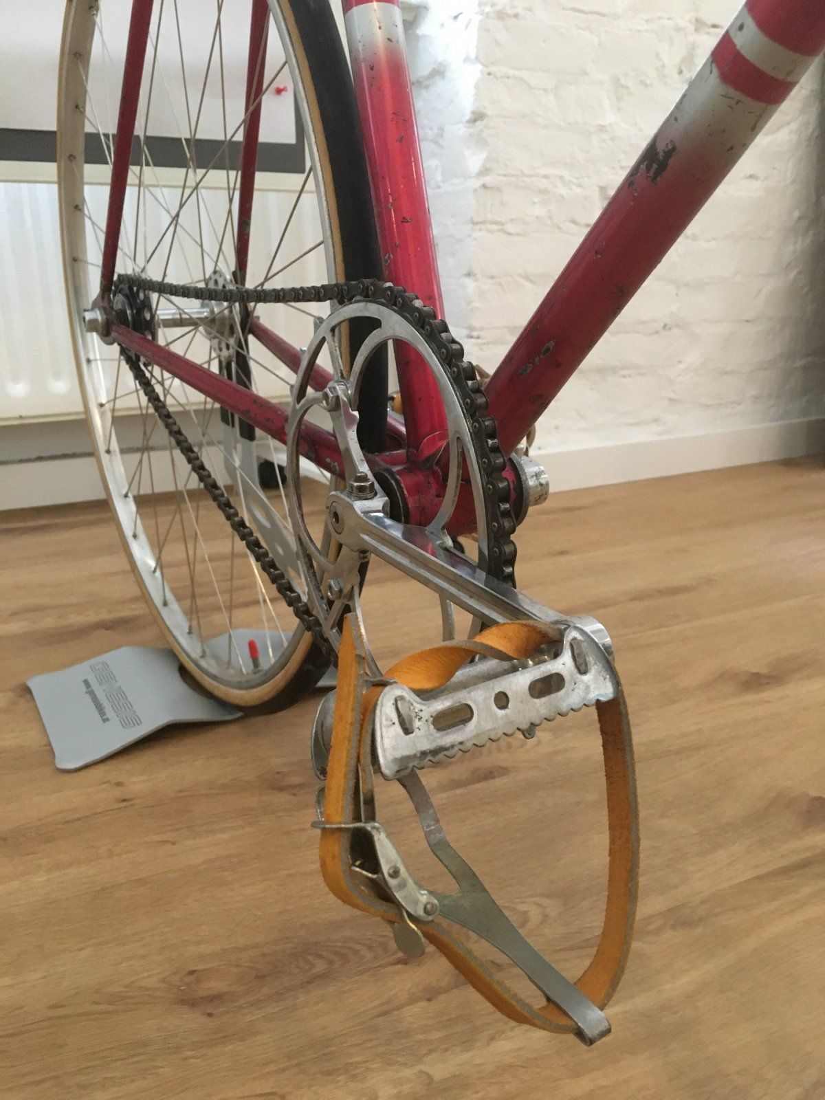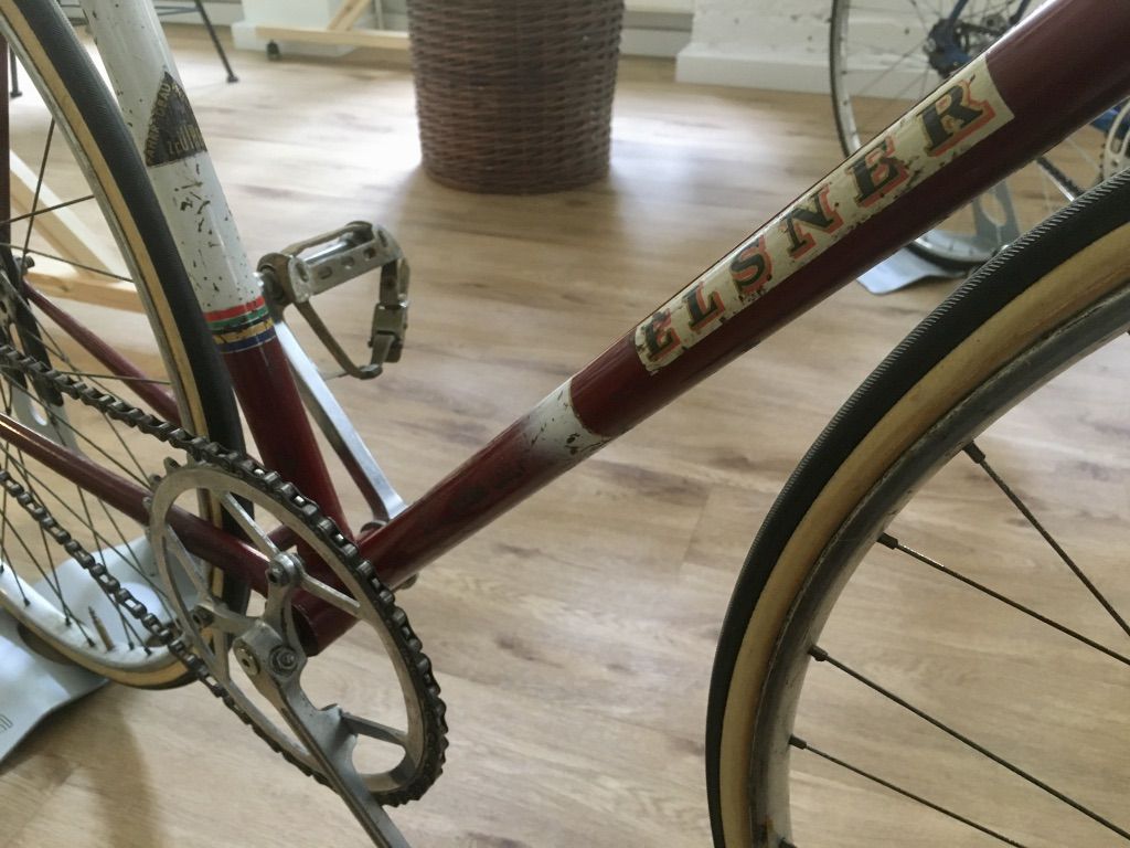 Auf diesem Bild einer der seltenen Versuchsrahmen (bisher sind nur 4 Stück [= eine Testmannschaft] bekannt, man munkelt dass es wahrscheinlich auch nicht mehr geben wird) mit 24 Zoll Laufrädern vorn und hinten. Die Idee dahinter war es, denn Abstand zwischen den Fahrern einer Mannschaft durch die kleinen Laufräder stark zu reduzieren um den Windschatten noch optimaler ausnutzen zu können. Leider lief das in der Praxis so schlecht, dass die Idee wieder verworfen wurde: