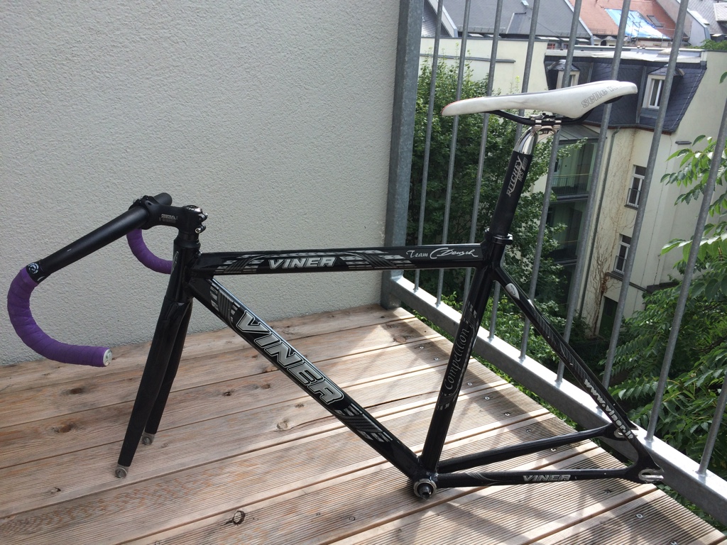 Bin schon seit längerem auf der Suche nach einem alten Stahlbahnrahmen. Jetzt habe ich einen Benotto Pista angeboten bekommen. Ursprünglich von einem Bahnsportverein, Lack ist nicht original.