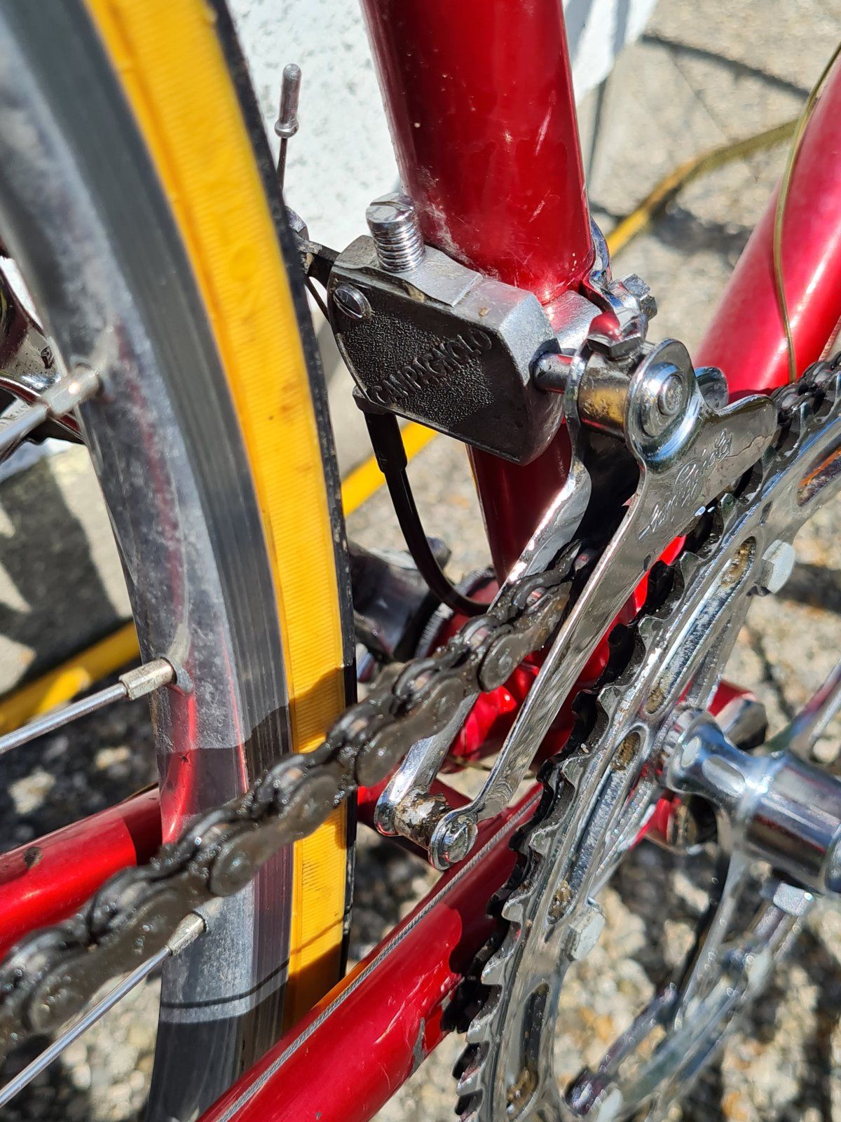 Natürlich, das Rad ist leider nicht mehr im Originalzustand, sogar eine Record Kurbel aus den 90gern ist drann.