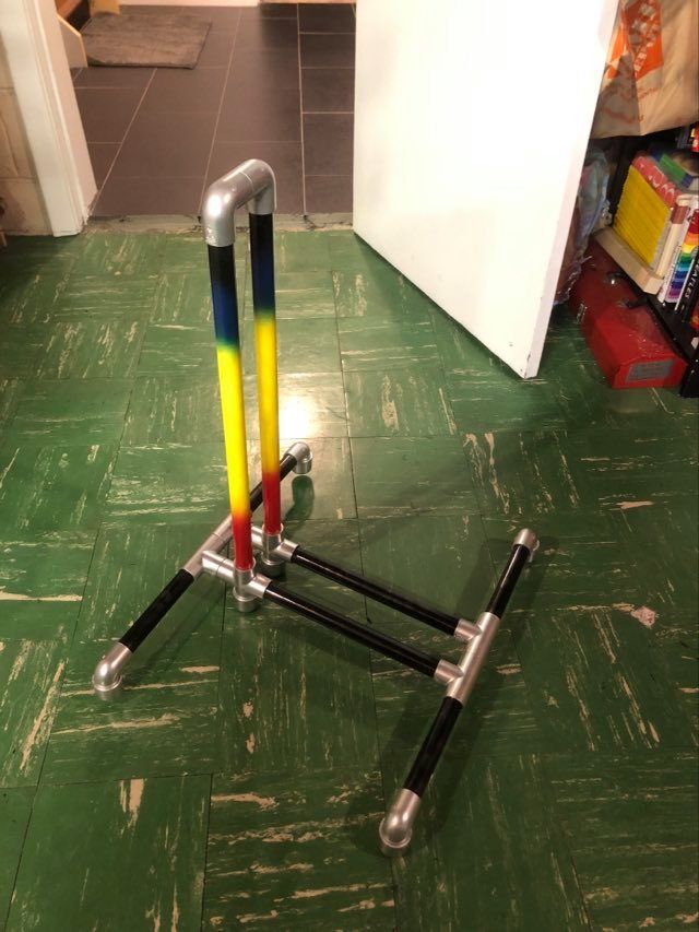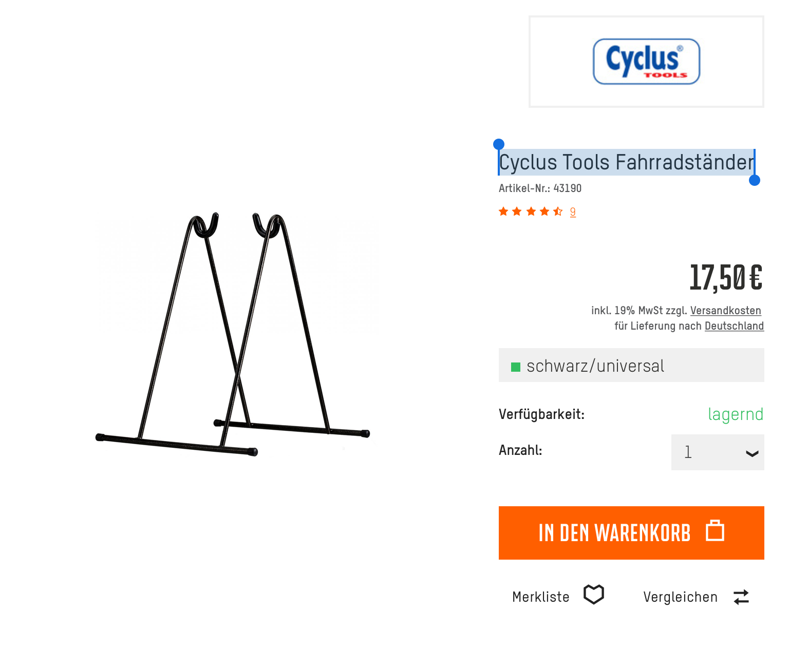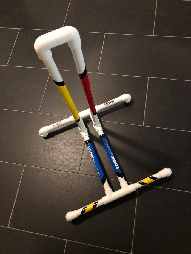 Der Ständer für das Dreieck hinten ist auch gut für Präsentationen. Da kann man auch mal die Mechanik kurz testen, da das Hinterrad in der Luft hängt und das vordere nen sicheren Stand hat!
