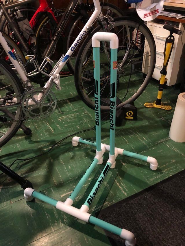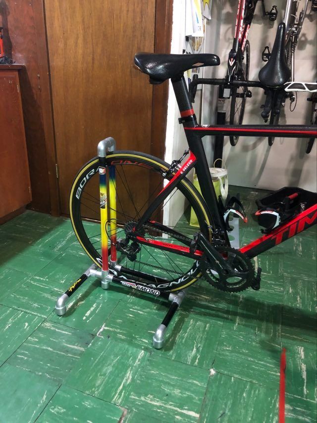 Ein 29er Mountainbike Steht am Boden, ein 27,5er Mountainbike Hinterrad schwebt, aber wie es mit einem 700 C Rennrad ausschaut weiß ich nicht…Da schaue ich gerne nachher mal wie es sich verhält