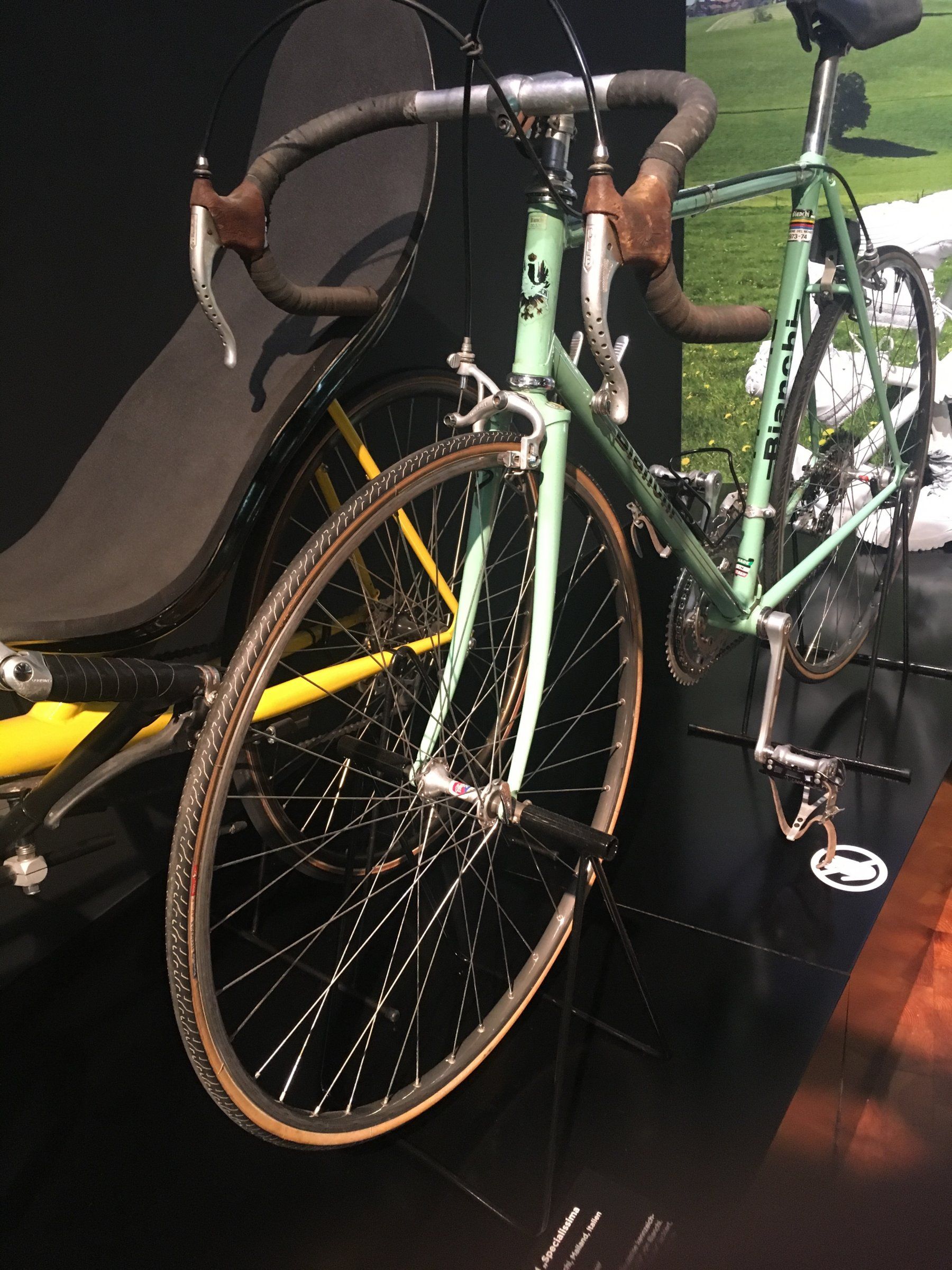 Die 200 Jahre Fahrradaustellung in Mannheim beherbergt, als eines der wenigen Rennräder, auch dieses Bianchi.