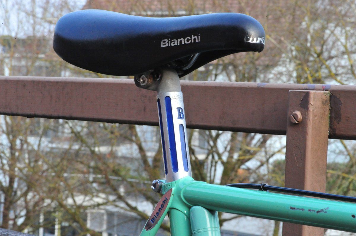 Das war ein Fehlkauf von einem Freund. Er hat es in der falschen Grösse gekauft bzw. es gab ein Missverständis zwischen ihm und dem Verkäufer. Und hat es mir dann als Rad von 1976 verkauft und ich hatte dummerweise keine Bilder verlangt. Und ein Bianchi aus den 80er Jahren steht nun gar nicht auf meiner Wunschliste und es sollte zurückgehen. Da hatte nun mein Freund keine Nerven für und gab mir auf den Kaufpreis 50%.Meine Güte, wo treibst du nur diese ganzen Schätze auf? Mit Campa Alu Kranz täglich zur Arbeit ist ja schon fast frech zu nennen. Und denk noch mal über die Reifen nach, die Contis sehen einfach gruselig aus.
